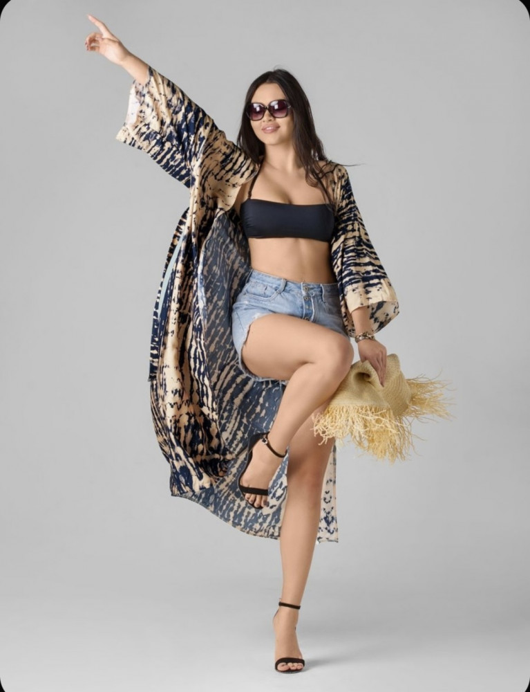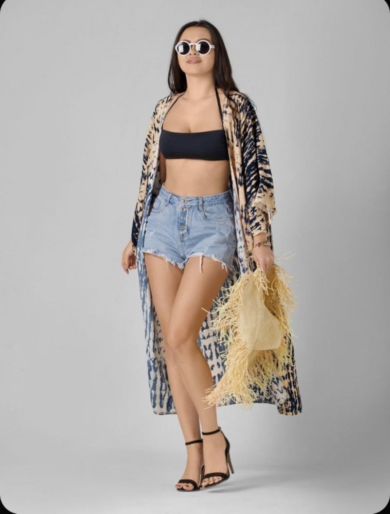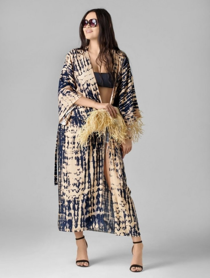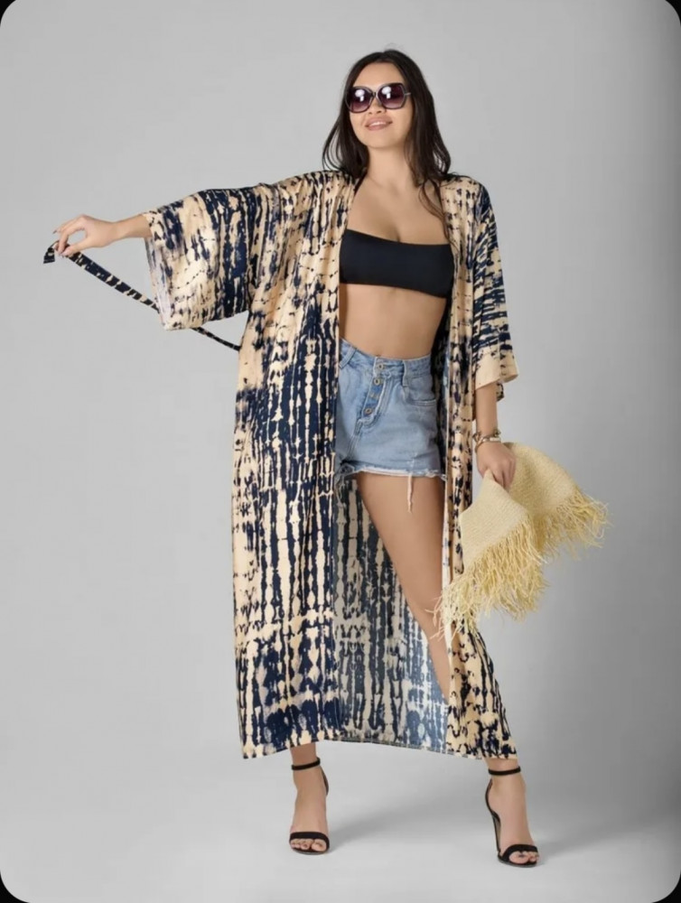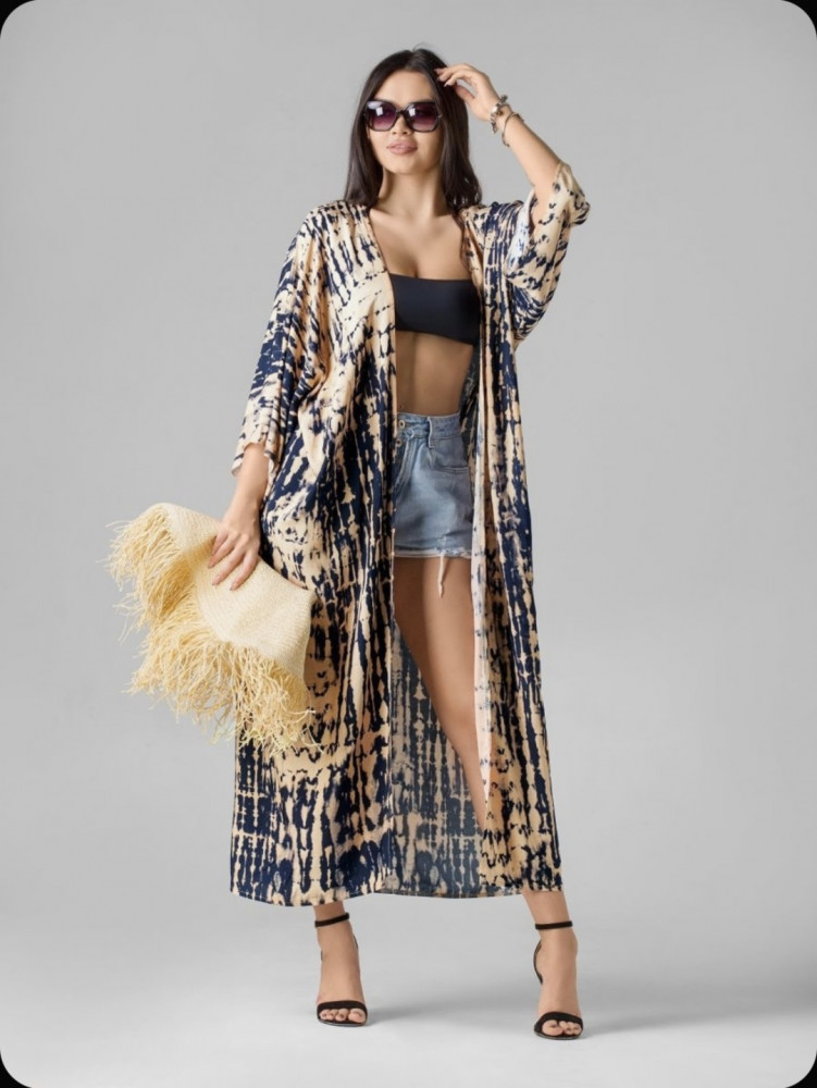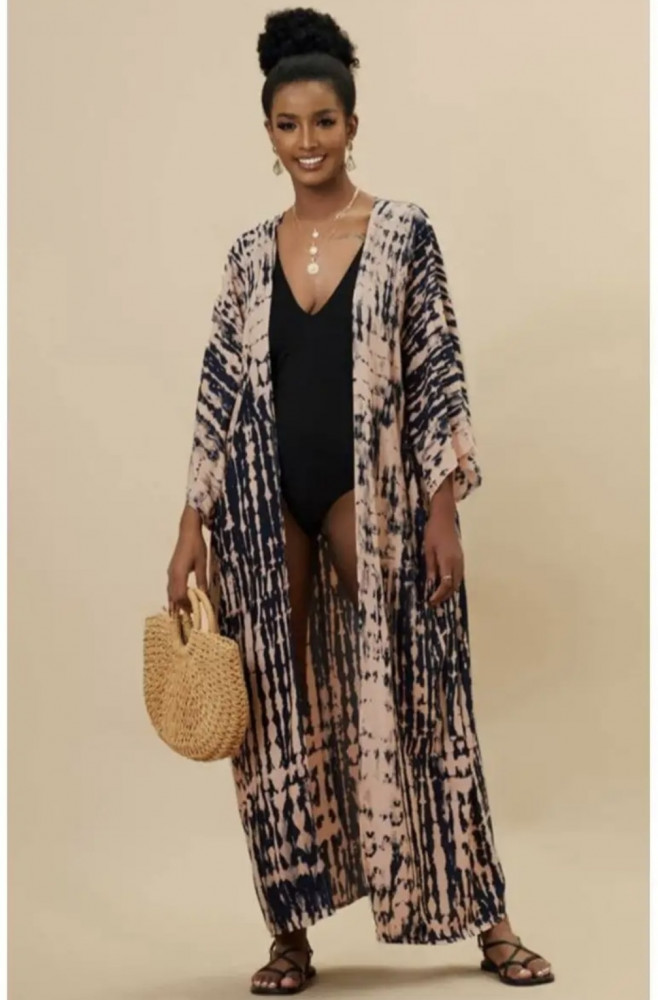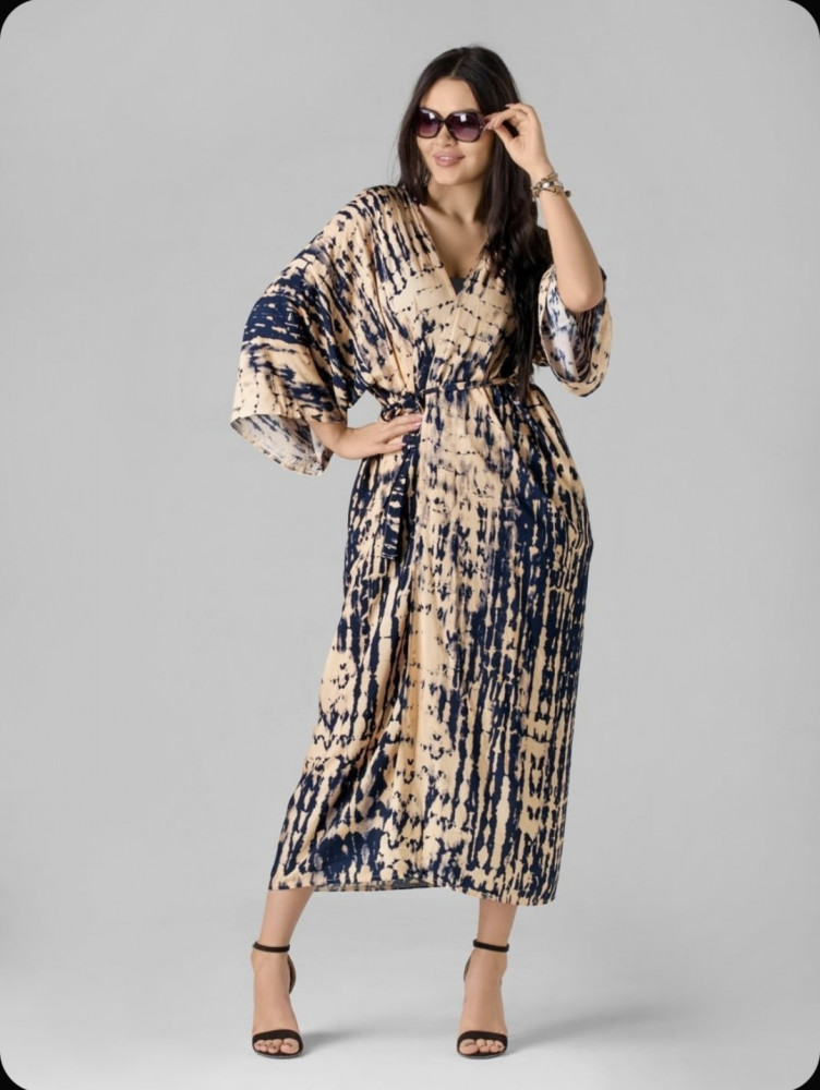 Привет, красотки! Слышите, как волны накатывают на берег и шелестят пальмовые листья? Это предчувствие отпуска! Наверняка вы уже мысленно собираете чемодан и думаете о том, как эффектно появиться на пляже. А мы как раз сшили для вас что-то потрясающее и рады это показать. Знакомьтесь — женская пляжная туника. Наша туника для пляжа представлена в едином размере 42-52. Свободный крой с закругленными полами и широкими рукавами подходит для разных типов фигур. На миниатюрных дамах туника будет смотреться как стильное пляжное платье оверсайз. Если вы носите женскую одежду большого размера — удлиненная туника элегантно и деликатно сядет на ваш силуэт. Фасон туники также подойдет для беременных девушек. Экспериментируйте с образами, носите эту вещь с поясом и без. Наденьте утонченные босоножки — и пляжный женский халатик превратится в вечерний наряд. Эта модель с рукавами одновременно и нарядная туника, и платье, и парео, и накидка на купальник — настоящая женская одежда-выручалочка.