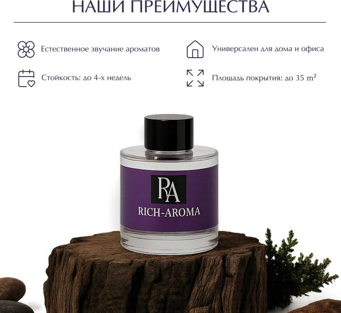 Парфюмерия мировых брендов, ароматы на основе натуральных компонентов от бренда Rich Aroma. |