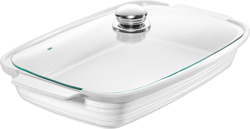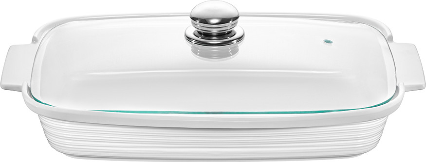 Блюдо из серии «Шёлк» от Elan Gallery предназначено для приготовления и эстетичной подачи ваших любимых блюд. Размер изделия — 34×21,5×10,5 см, объём — 1,8 литра. Внутренний размер — 25×16×5 см. Выполнено из высококачественного белого фарфора. Он не впитывает цвет продуктов и легко отмывается, благодаря чему надолго сохранит свою белизну. Поверхность украшена частым горизонтальным рельефом. Крышка выполнена из стекла и оснащена металлической ручкой. Блюдо подойдёт для подачи сельди под шубой, салатов и плова. Используйте глубокую ёмкость в роли шубницы, чтобы порадовать гостей любимым праздничным блюдом.