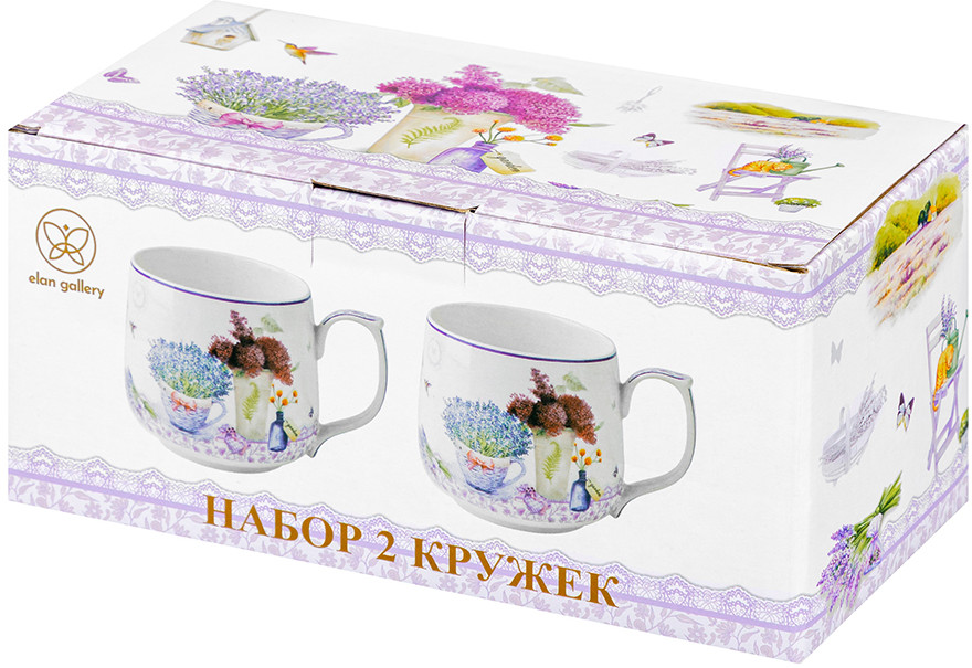 Серия украшена нежным принтом на тему Прованса — французской провинции, которая славится своими лавандовыми полями и красивыми пейзажами. Изображение пышных букетов лаванды и гортензии позволит окунуться в атмосферу тепла, гармонии и южного солнца. Кофейные кружки помогут вам провести множество приятных завтраков с капучино и латте, а также уютные чайные вечера с конфетами, вафлями, другими десертами и сладостями. Подойдут ценителям чая и кофе, которые любят пить из красивой и необычной посуды. Согрейтесь зимой любимым напитком: какао с маршмэллоу, ягодным чаем или горячим шоколадом. Летом освежитесь домашним лимонадом или морсом.