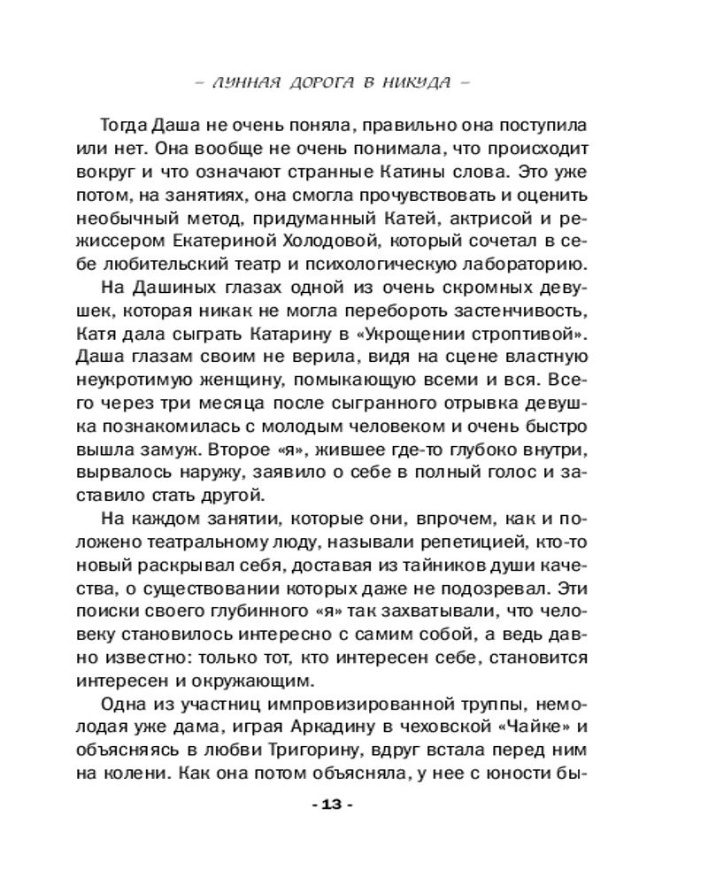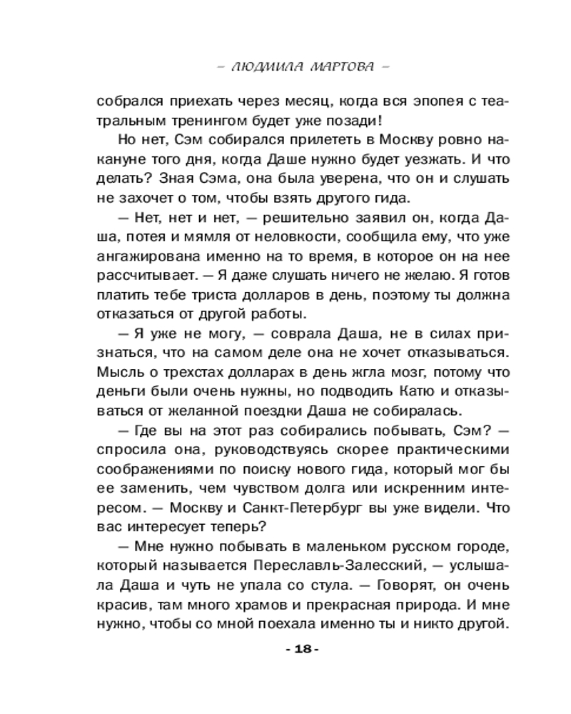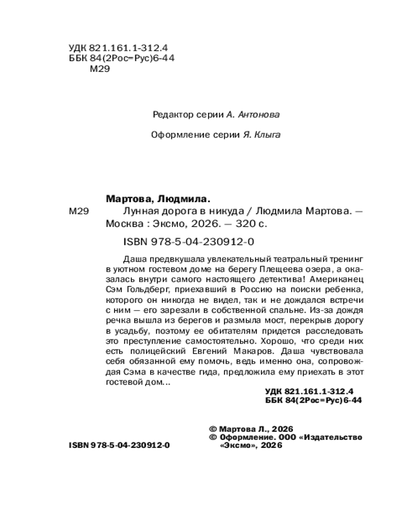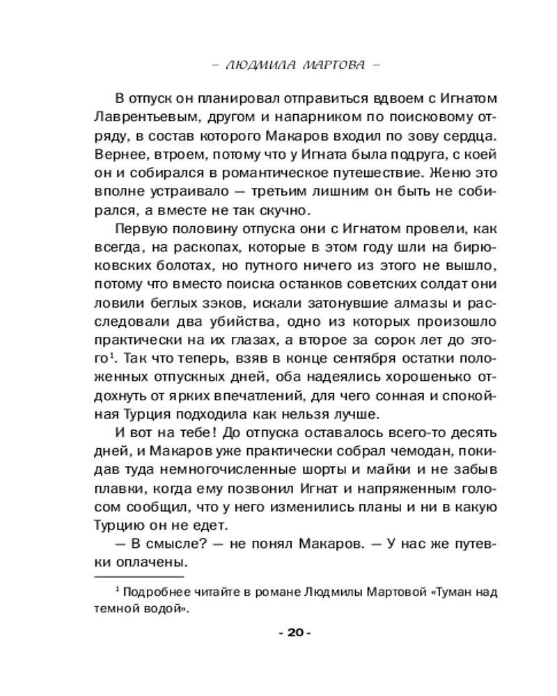 💳 Оплатить за товар можно при получении 🇰🇿 Есть бесплатная доставка по Казахстану 🎁 Копите бонусы с каждой покупки Серия: Желание женщины. Детективные романы Л. Мартовой. Новое оформление (обложка) Даша предвкушала увлекательный театральный тренинг в уютном гостевом доме на берегу Плещеева озера, а оказалась внутри самого настоящего детектива! Американец Сэм Гольдберг, приехавший в Россию на поиски ребенка, которого он никогда не видел, так и не дождался встречи с ним — его зарезали в собственной спальне. Из-за дождя речка вышла из берегов и размыла мост, перекрыв дорогу в усадьбу, поэтому ее обитателям придется расследовать это преступление самостоятельно. Хорошо, что среди них есть полицейский Евгений Макаров. Даша чувствовала себя обязанной ему помочь, ведь именно она, сопровождая Сэма в качестве гида, предложила ему приехать в этот гостевой дом... |