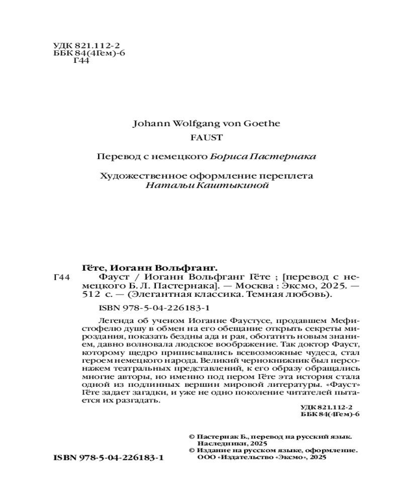 💳 Оплатить за товар можно при получении 🇰🇿 Есть бесплатная доставка по Казахстану 🎁 Копите бонусы с каждой покупки Серия: Элегантная классика. Тёмная любовь Легенда об ученом Иоганне Фаустусе, продавшем Мефистофелю душу в обмен на его обещание открыть секреты мироздания, показать бездны ада и рая, обогатить новым знанием, давно волновала людское воображение. Так доктор Фауст, которому щедро приписывались всевозможные чудеса, стал героем немецкого народа. Великий чернокнижник был персонажем театральных представлений, к его образу обращались многие авторы, но именно под пером Гёте эта история стала одной из подлинных вершин мировой литературы. «Фауст» Гёте задает загадки, и уже не одно поколение читателей пытается их разгадать. |