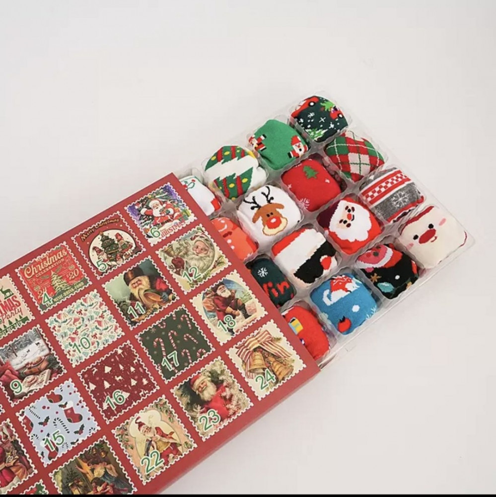 Ежедневный праздничный сюрприз: испытайте острые ощущения от обратного отсчета до Рождества с помощью этого рождественского календаря обратного отсчета, в котором каждый день появляется новая пара праздничных носков, что добавляет волнения и предвкушения обратному отсчету к праздникам.