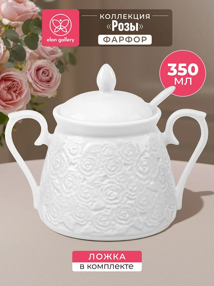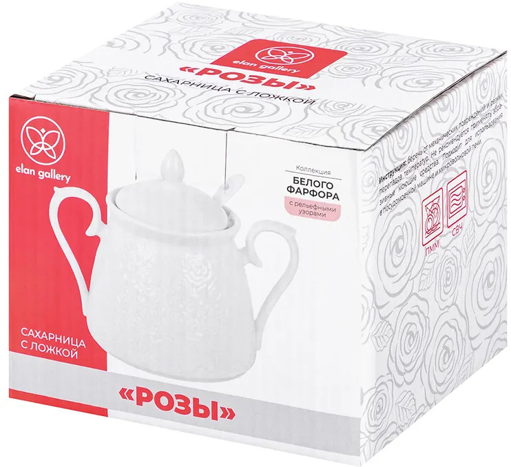 Elan Gallery Сахарница с крышкой и ложкой «Розы»+168