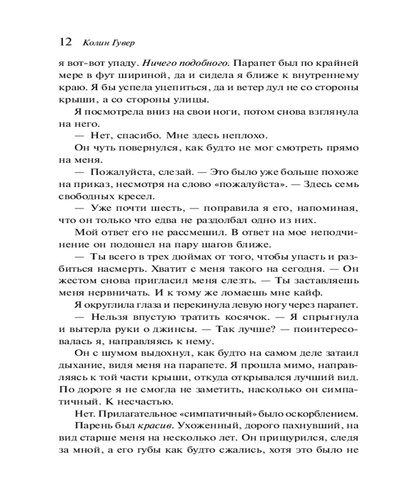 💳 Оплатить за товар можно при получении 🇰🇿 Есть бесплатная доставка по Казахстану от 1 дня 🎁 Копите бонусы с каждой покупки Серия: Магистраль. Главный тренд Лили всегда упорно трудилась ради той жизни, о которой мечтала. Она проделала долгий путь: уехала из маленького города, окончила колледж и открыла свой бизнес в Бостоне. А потом Лили влюбилась в Райла. Он напорист, упрям и питает абсолютную слабость к Лили, а она не может выбросить его из головы. Райл против серьезных отношений, и очень скоро Лили начинает понимать, что не всё так просто. Всё больше Лили одолевают сомнения. Всё меняется, когда в ее жизни снова появляется первая любовь — Атлас. |