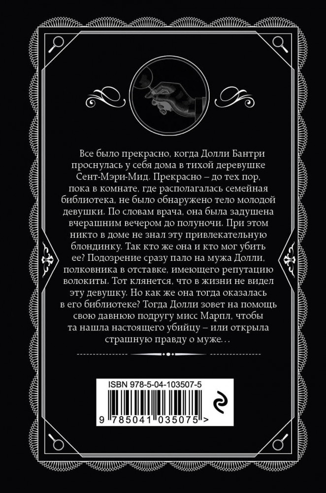 Все было прекрасно, когда Долли Бантри проснулась у себя дома в тихой деревушке Сент-Мэри-Мид. Прекрасно — до тех пор, пока в комнате, где располагалась семейная библиотека, не было обнаружено тело молодой девушки. По словам врача, она была задушена вчерашним вечером до полуночи. При этом никто в доме не знал эту привлекательную блондинку. Так кто же она, и кто мог убить ее? Подозрение сразу пало на мужа Долли, полковника в отставке, имеющего репутацию волокиты. Тот клянется, что в жизни не видел эту девушку. Но как же она тогда оказалась в его библиотеке? Тогда Долли зовет на помощь свою давнюю подругу мисс Марпл, чтобы та нашла настоящего убийцу — или открыла страшную правду о муже...