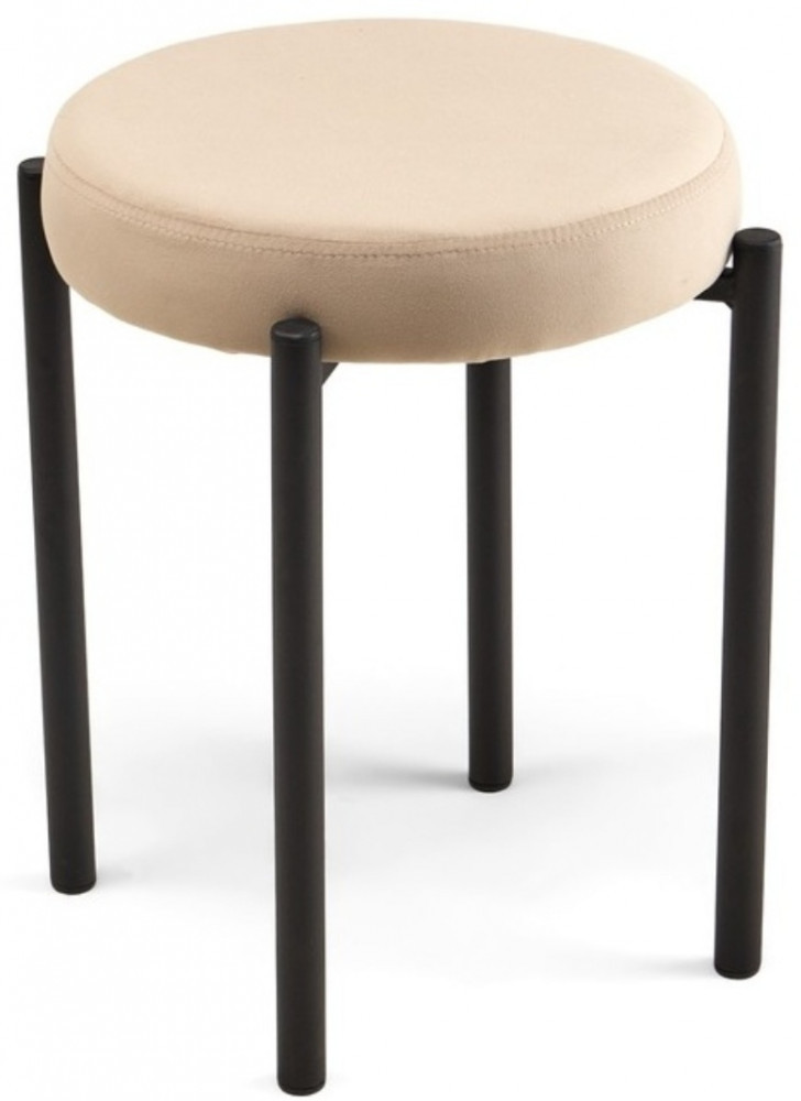 Модель доступна в нескольких вариантах обивки. Материалы: сиденье — ДСП, поролон высокой плотности, велюр; ножки — металл. Габариты табурета: полная ширина — 41 см, диаметр сиденья — 36 см, высота — 50 см. Вес изделия составляет 2.2 кг. Табурет поставляется в собранном виде — достаточно распаковать его, и он сразу готов к использованию. |