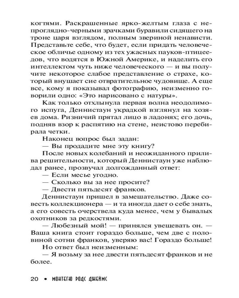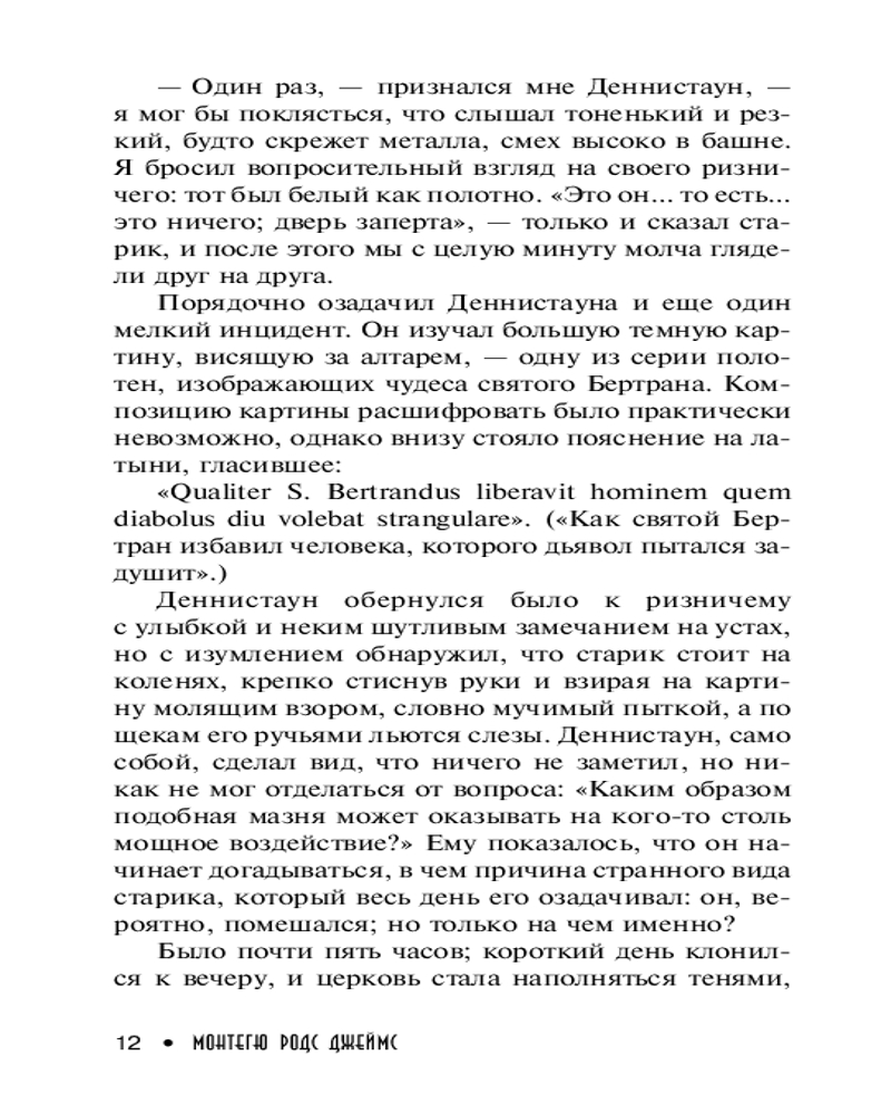 | Монтегю Родс Джеймс родился в деревне Гуденстоун, графство Кент, в семье священника. Окончил Итонский колледж, затем поступил в Кембридж; по окончанию университета работал в археологическом музее, защитил диссертацию, в 1889 г. стал деканом кембриджского Кингз-колледжа, а в1913 г. - вице-канцлером университета. Писать начал под влиянием рассказов Шеридана Ле Фаню (сборник произведений которого впоследствии выпустил отдельным изданием). Рассказы Джеймса печатались во множестве литературных... |
