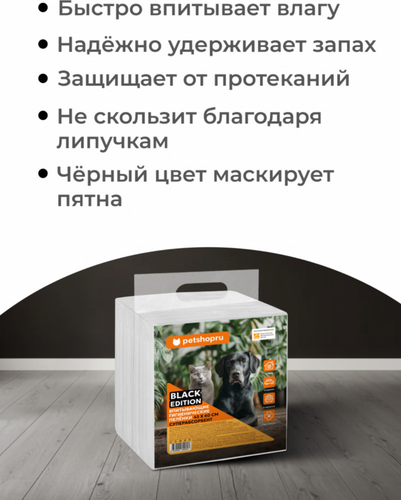 Petshop Впитывающие пелёнки с угольным фильтром на липучках для собак и кошек «Black Edition»