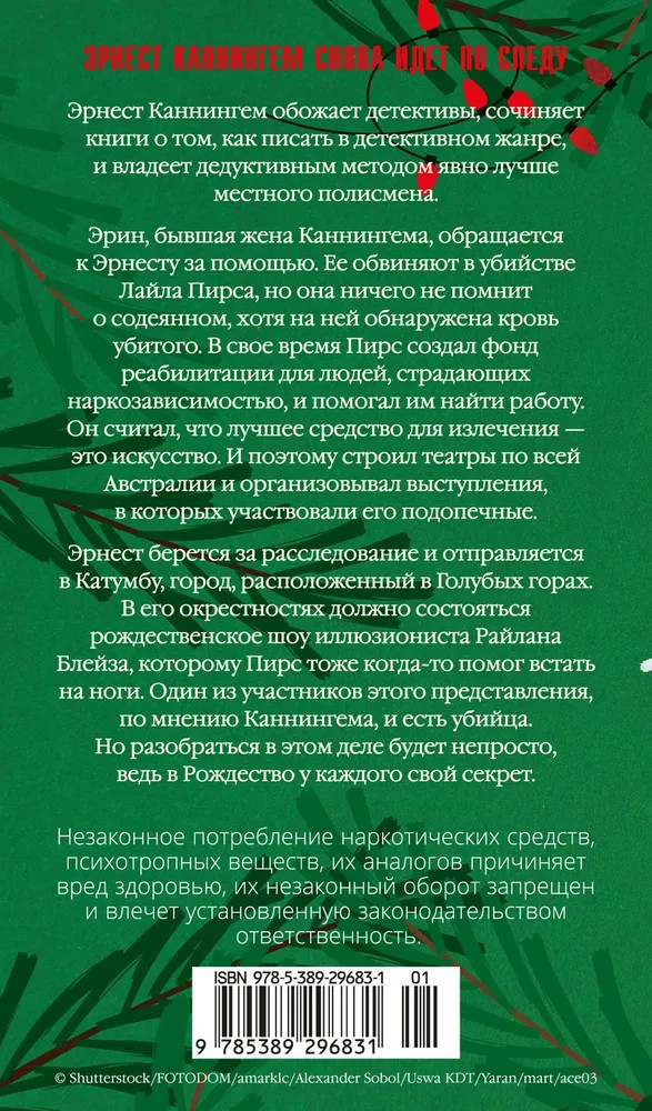 💳 Оплатить за товар можно при получении 🇰🇿 Есть бесплатная доставка по Казахстану от 1 дня 🎁 Копите бонусы с каждой покупки Серия: Азбука-бестселлер Эрнест Каннингем обожает классику детектива, пишет книги о том, как писать в детективном жанре, и владеет дедуктивным методом явно лучше местного полисмена. За короткое время ему удалось раскрыть два громких дела и сделать себе на этом имя. Эрин, бывшая жена Каннингема, обращается к Эрнесту за помощью. Ее обвиняют в убийстве Лайла Пирса, но она ничего не помнит о содеянном, хотя на ее руках и лице обнаружена кровь убитого. В свое время Пирс организовал фонд реабилитации для людей, страдающих наркозависимостью, и помогал им найти работу. В прошлом талантливый актер, он после смерти брата покинул Голливуд и вернулся в Австралию, чтобы помогать несчастным вернуться к нормальной жизни. Пирс считал, что лучшее средство для излечения — это искусство. Поэтому он строил театры по всей Австралии и организовывал выступления, в которых участвовали его подопечные. |