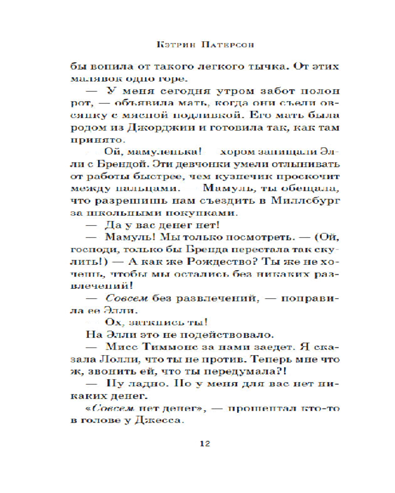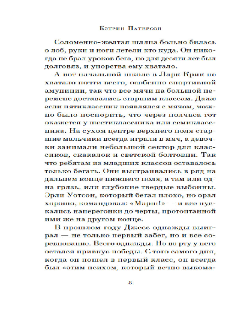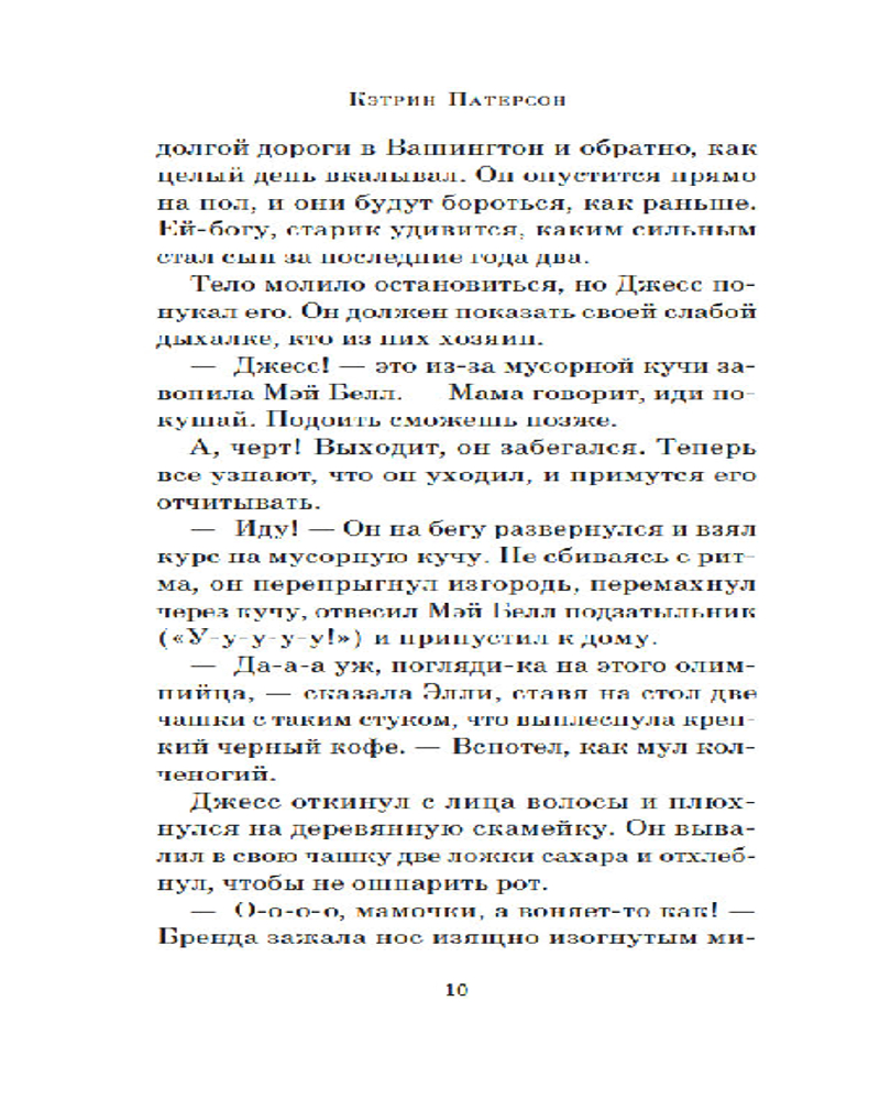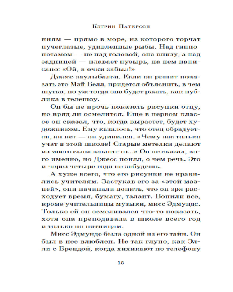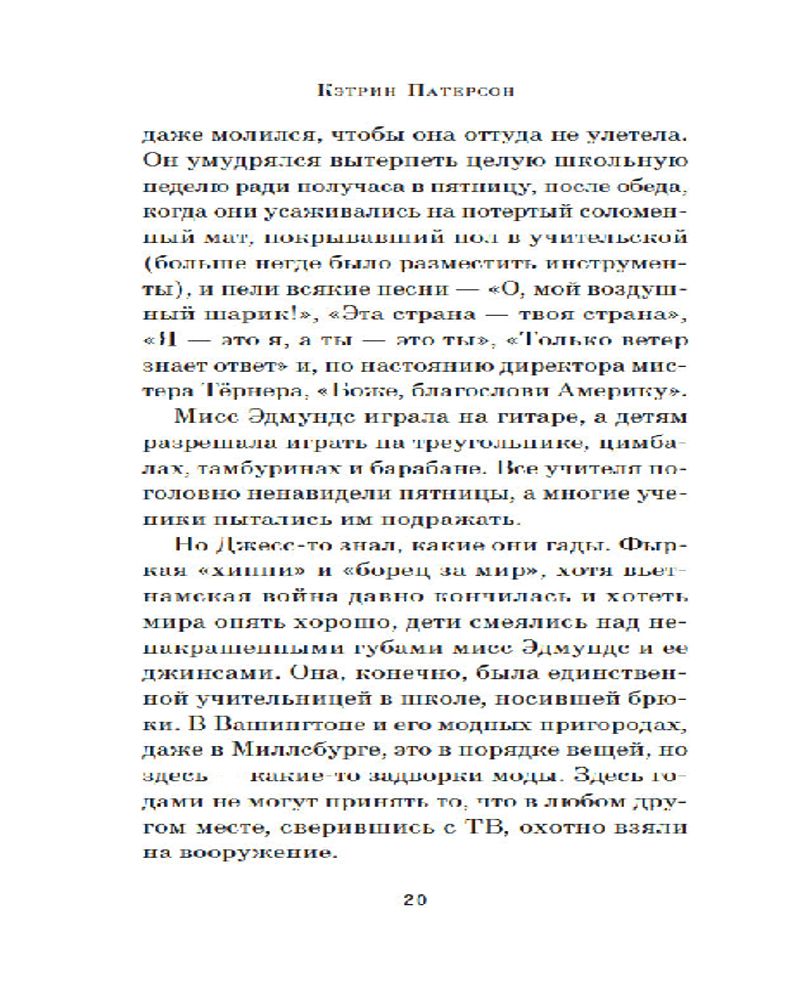 | Кэтрин Патерсон современная американская писательница, удостоенная многих наград и премий, в числе которых — премия Андерсена, премия А. Линдгрен и две медали Ньюбери — высшей американской награды в детской литературе за книги. |