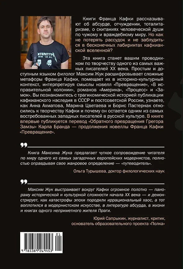 💳 Оплатить за товар можно при получении 🇰🇿 Есть бесплатная доставка по Казахстану 🎁 Копите бонусы с каждой покупки Серия: Человек Мыслящий. Идеи, способные изменить мир Книга посвящена творчеству Франца Кафки в контексте культуры и литературы ХХ века. В ней показаны исторический и культурный контексты, сформировавшие писателя, очерчены контуры его художественного мира, представлены различные варианты интерпретаций ключевых произведений Кафки: новеллы «Превращение» и романов «Америка», «Процесс», «Замок». Отдельная часть посвящена восприятию наследия писателя в русской культуре и судьбе публикации его произведений в СССР. Впервые на русском языке опубликована новелла Карла Бранда «Обратное превращение Грегора Замзы» (1916) — продолжение кафкианской новеллы «Превращение» (1912). |