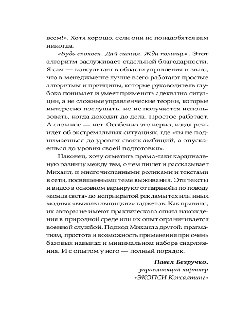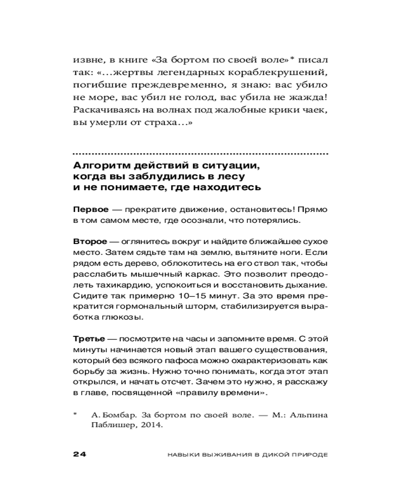 💳 Оплатить за товар можно при получении 🇰🇿 Есть бесплатная доставка по Казахстану 🎁 Копите бонусы с каждой покупки Что делать, если прекрасная прогулка в лесу обернулась тем, что вы заблудились? Как сохранить самообладание, когда вы не понимаете, куда вам идти и что делать? Как обеспечить себя всем необходимым для выживания и суметь подать сигнал спасателям? Как быть, если, заблудившись, вы поранились, проголодались, не можете найти воду, замерзаете или вынуждены заночевать в лесу? Какие явные и скрытые опасности вас подстерегают и как их можно избежать? Ответы на эти и другие важные вопросы дает Михаил «Хыч» Ярин, известный российский эксперт по выживанию с многолетним опытом практики в самых разных экстремальных условиях. Его простые и четкие рекомендации спасли жизнь уже очень многим людям. |