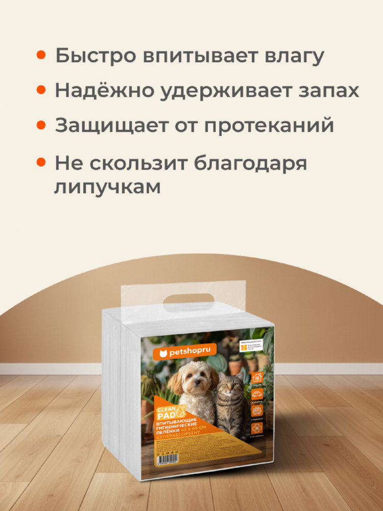 Petshop Пелёнки впитывающие на липучках для собак и кошек «Clean Pad»