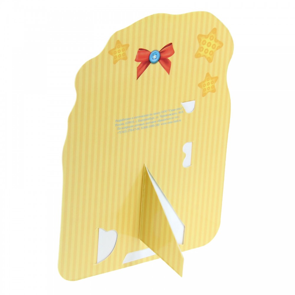 Простая, но стильная фоторамка «Наша радость» для фото 9 х 13 см сделана из картона, что позволяет разместить её на любой поверхности. Приклейте её на стену или подвесьте за прищепки на ленту, оформите с её помощью коллаж или просто поставьте на полку с помощью ножки. Главное, что фотография вашего любимого человека будет всегда на виду.