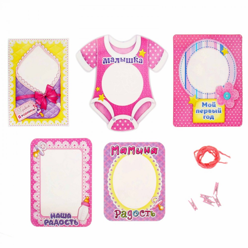 Очаровательный набор фоторамок. Яркие, глянцевые фоторамки. Прилагаются маленькие розовые прищепочки. Очень красиво для праздника. Можно и интерьер украсить в детской.