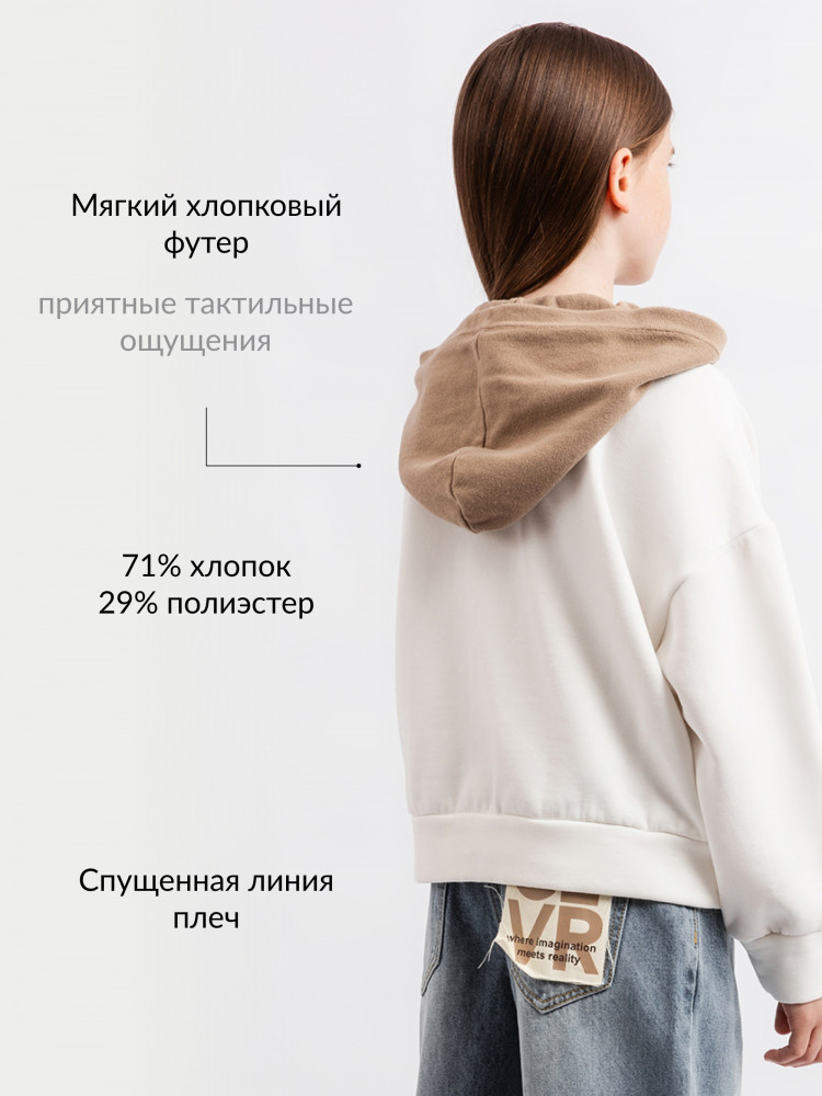 Gulliver Худи для девочки укороченное с вязаной отделкой