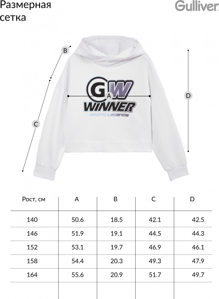 Худи для девочки укороченное  | Gulliver