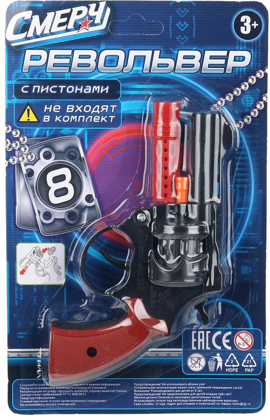 💳 Оплатить за товар можно при получении 🇰🇿 Есть бесплатная доставка по Казахстану 🎁 Копите бонусы с каждой покупки Револьвер для стрельбы пистонами ТМ «Смерч» непременно понравится юному герою. Игровое оружие с реалистичным звуком и лёгким дымовым эффектом станет любимой игрушкой вашего ребёнка. Револьвер легко заряжается и перезаряжается, нужно просто откинуть 8-зарядный барабан и установить кольцо с пистонами (приобретаются отдельно). На упаковке имеется схема установки пистонов. Игры с оружием ТМ «Смерч» помогут развить: координацию движений, воображение, внимание и моторику. |