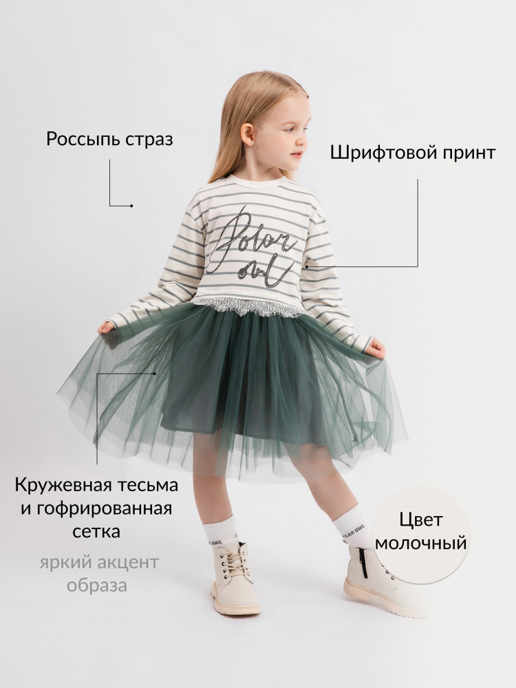 Gulliver Платье с длинным рукавом для девочки из трикотажа и тонкой сетки