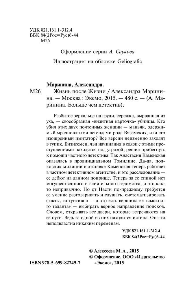 | Жизнь после Жизни Александра Маринина