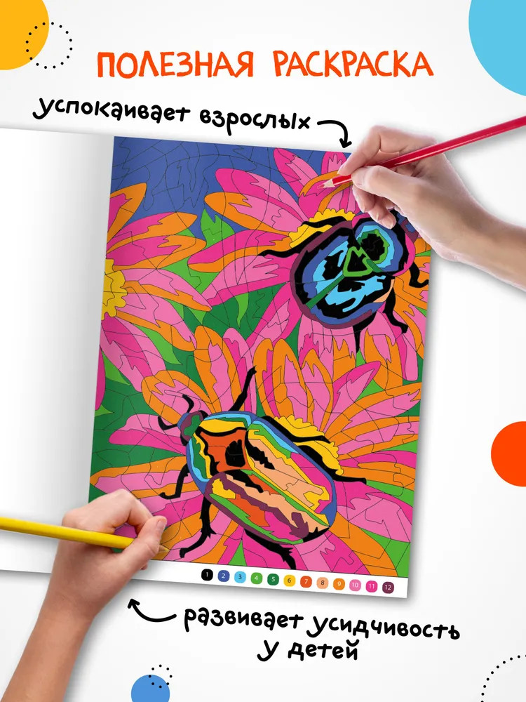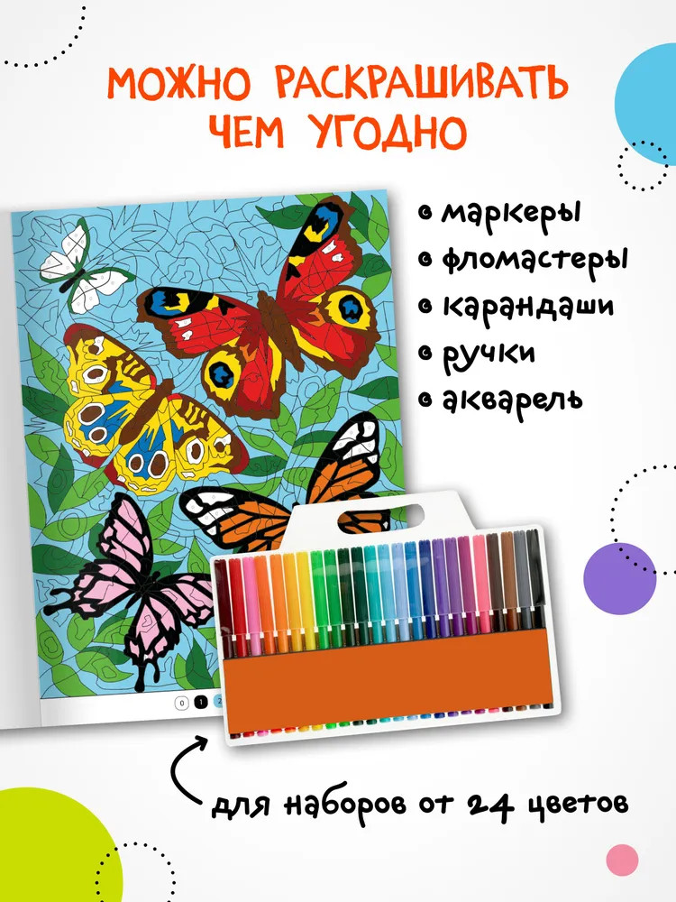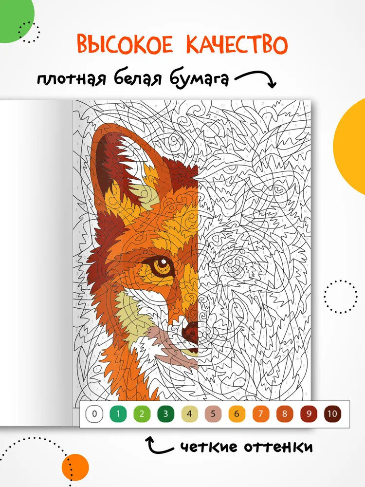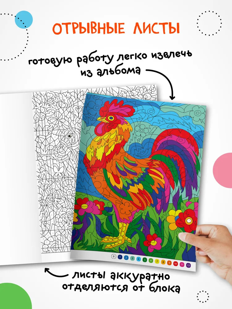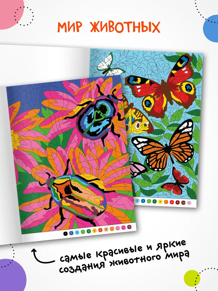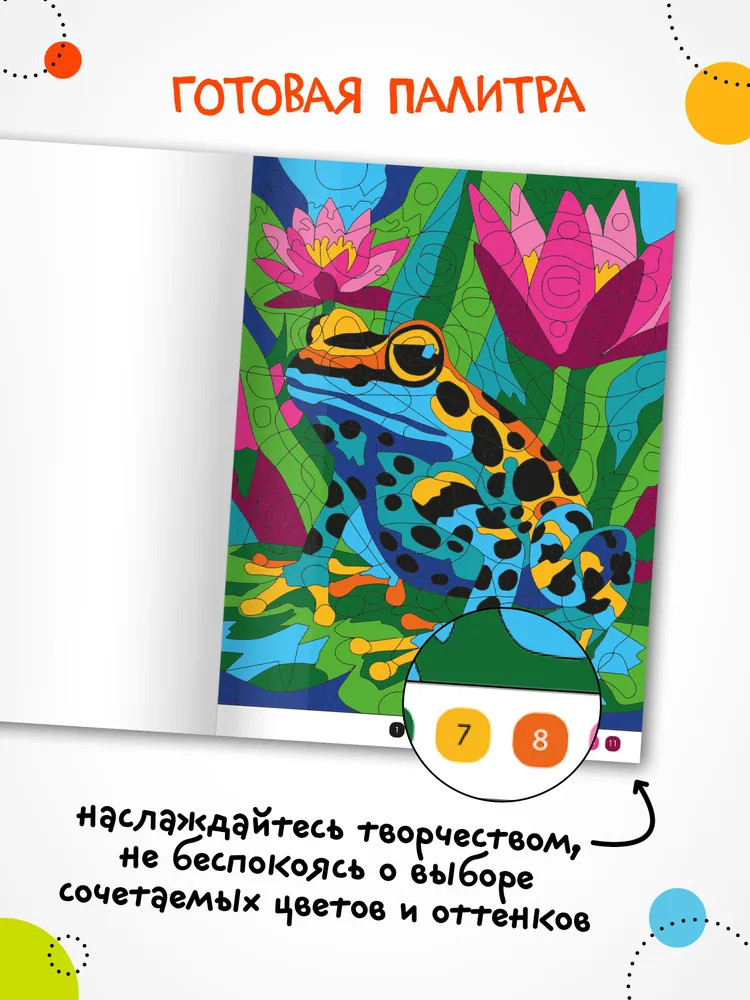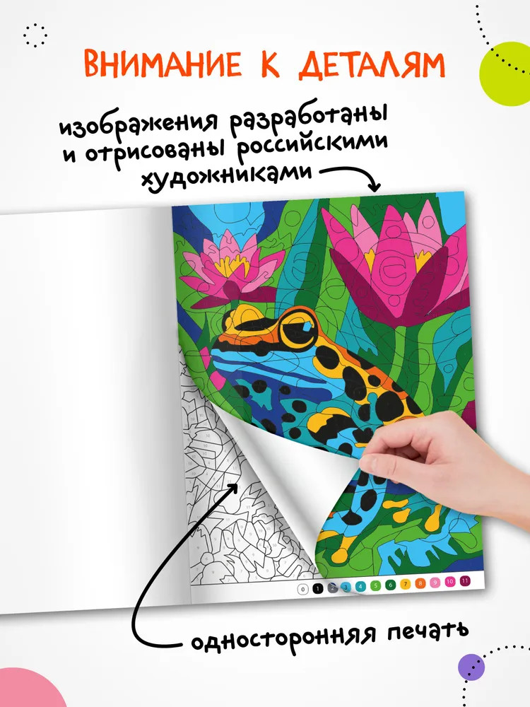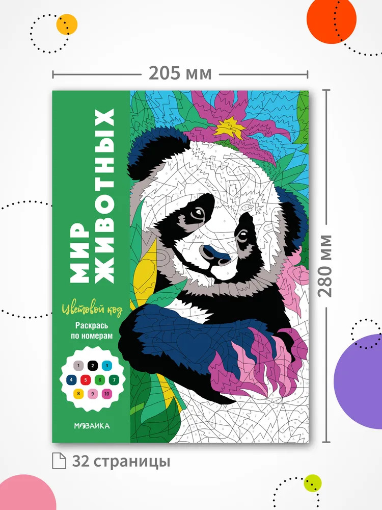 💳 Оплатить за товар можно при получении 🇰🇿 Есть бесплатная доставка по Казахстану от 1 дня 🎁 Копите бонусы с каждой покупки Серия: Цветовой код Серия раскрасок «Цветовой код. Раскрась по номерам» представляет собой увлекательный формат творчества для детей и взрослых. Раскраска «Мир животных» из этой серии знакомит с 15 самыми красивыми и яркими созданиями природы. Среди них — загадочный хамелеон, смешная панда, хитрая лиса и другие удивительные животные. Каждое изображение зашифровано сеткой линий и разбито на множество пронумерованных сегментов. Процесс расшифровки цветового кода позволяет шаг за шагом проявлять скрытую картину, погружаясь в медитативное творчество. |