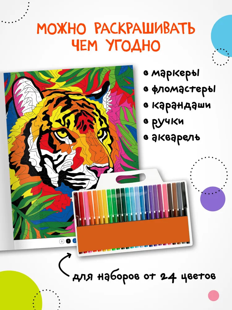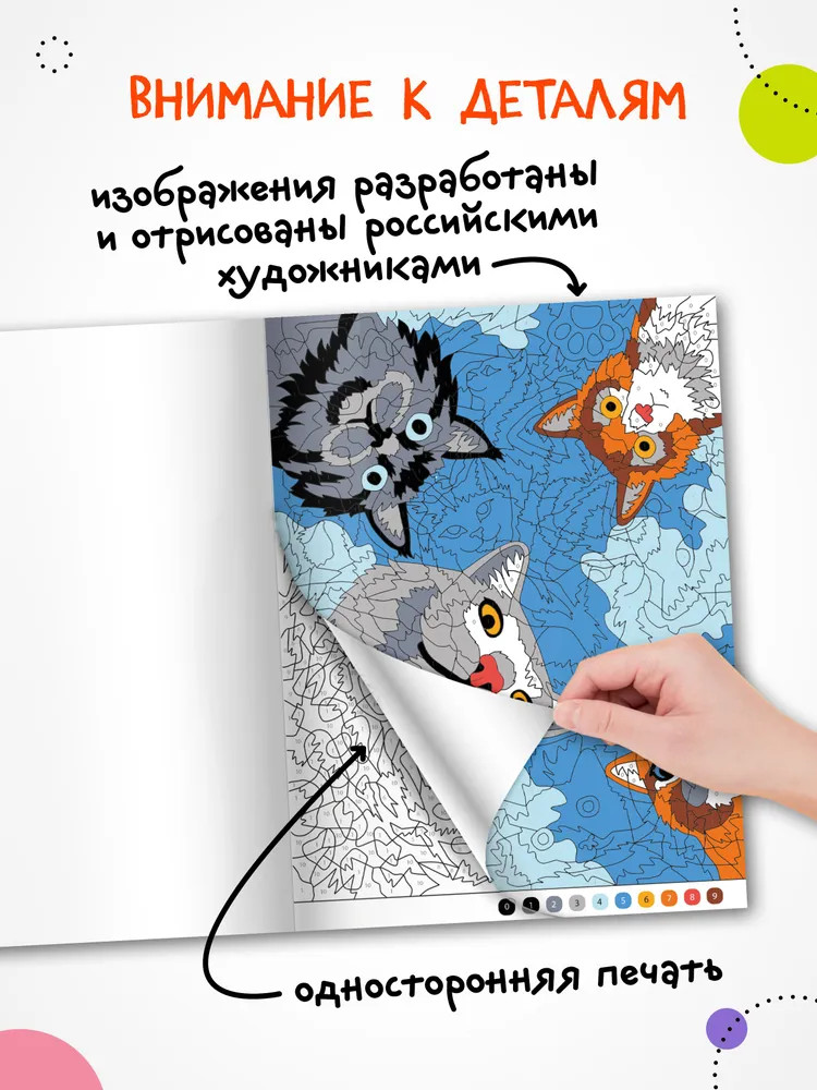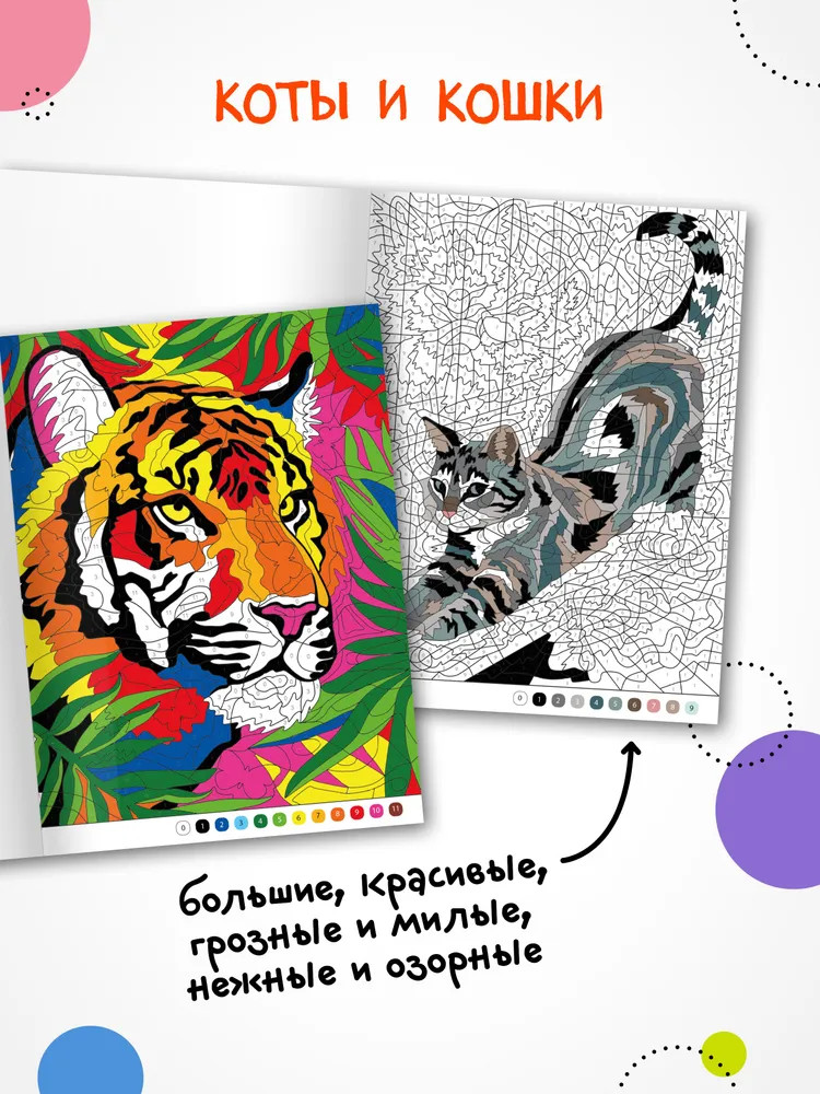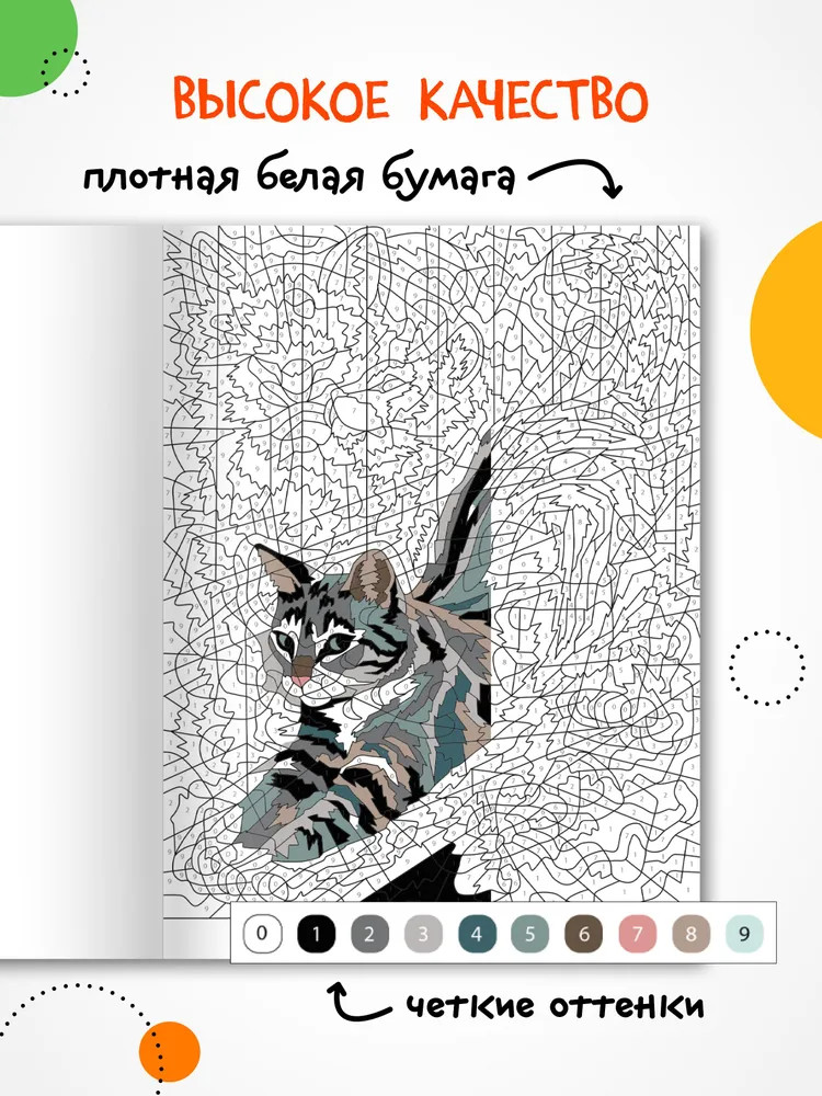 💳 Оплатить за товар можно при получении 🇰🇿 Есть бесплатная доставка по Казахстану от 1 дня 🎁 Копите бонусы с каждой покупки Серия: Цветовой код Серия раскрасок «Цветовой код. Раскрась по номерам» представляет собой увлекательный формат творчества для детей и взрослых. Раскраска «Коты и кошки» из этой серии знакомит с 15 изображениями самых разных представителей кошачьего мира: от величественных львов и грациозных рысей до милых пушистых домашних котиков. Каждое изображение зашифровано сеткой линий и разбито на множество пронумерованных сегментов. Процесс расшифровки цветового кода позволяет шаг за шагом проявлять скрытую картину, погружаясь в медитативное творчество. |
