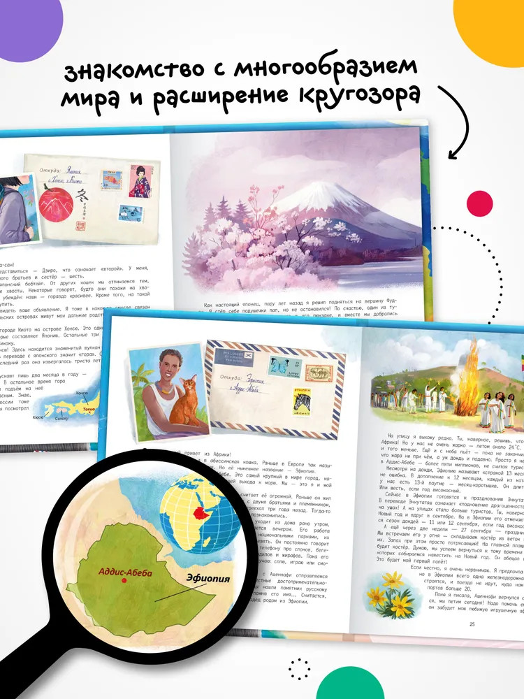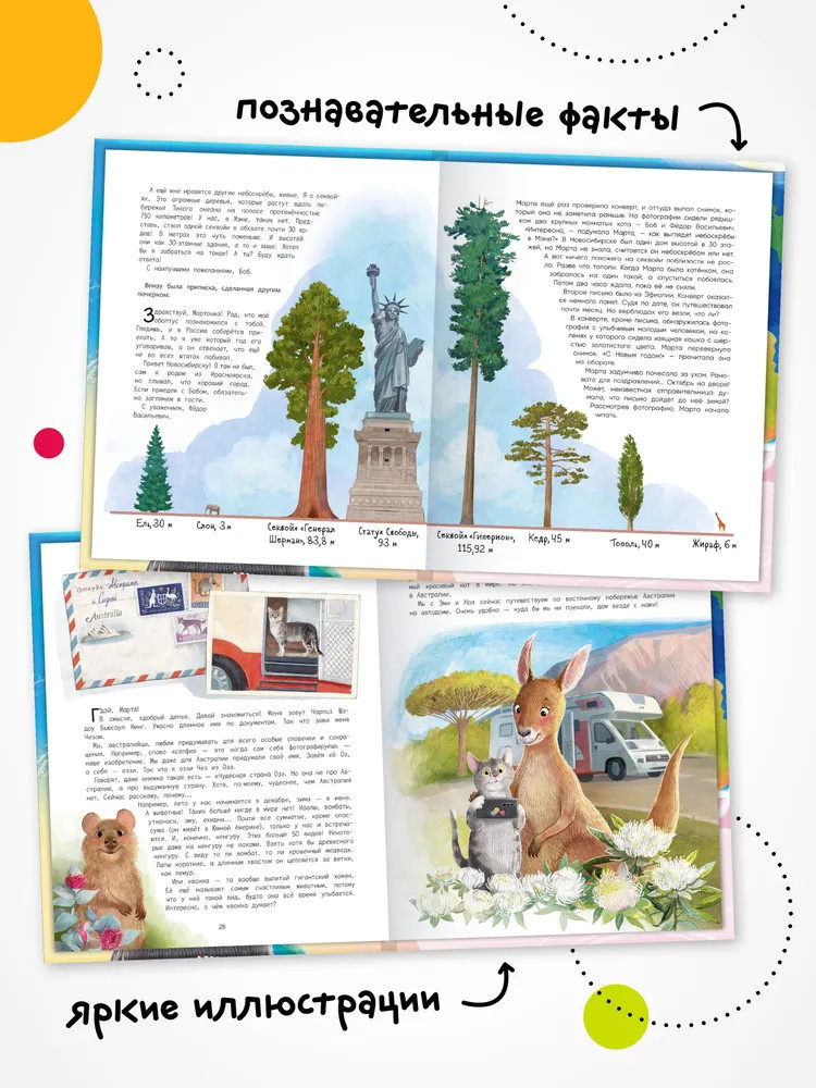 💳 Оплатить за товар можно при получении 🇰🇿 Есть бесплатная доставка по Казахстану 🎁 Копите бонусы с каждой покупки Книга «Вокруг света с кошками. География в конвертах» — необычный путеводитель по миру. Гидами здесь становятся пушистые любимцы — коты и кошки разных пород, которые живут на разных континентах. Всё начинается с того, что кошечка Марта из России пишет объявление на сайте, в котором предлагает другим познакомиться и рассказать, кто в какой стране живет. Вскоре она получает заветные конверты. Ей пишут бобтейл из Японии, сфинксы из Канады, мейнкун из США, британская кошка из Великобритании и абиссинская — из Эфиопии. Из Австралии Марта получает письмо от миста, а из Таиланда — от сиамской кошки. Все отправители рассказывают о своих странах, традициях, достопримечательностях и блюдах. Истории дополняют яркие иллюстрации, которые так интересно рассматривать. Словом, география и котики — что может быть лучше? |