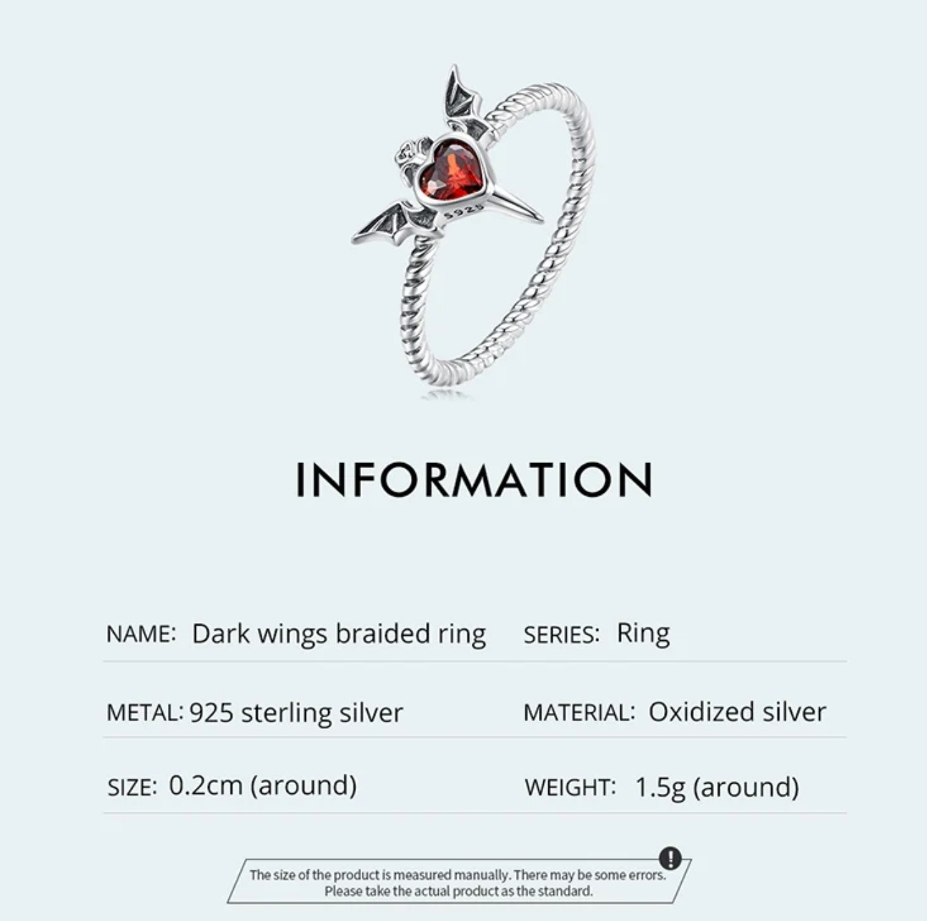 Bamoer Кольцо с фианитом «Летучая мышь»