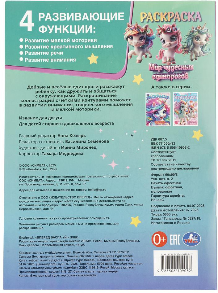 💳 Оплатить за товар можно при получении 🇰🇿 Есть бесплатная доставка по Казахстану от 1 дня 🎁 Копите бонусы с каждой покупки Раскраска «Мир чудесных единорогов» ТМ «УМка» — отличный подарок для юных художников. Эта увлекательная раскраска про прекрасных волшебных существ непременно понравится вашему ребёнку. В ней он найдёт интересные картинки с чёткими контурами и сюжетными текстами к ним. Данное издание станет отличным вариантом, чтобы взять его с собой в путешествие и скоротать время в дороге за раскрашиванием. Игровые занятия с раскраской ТМ «УМка» помогают потренировать руку к письму и способствуют развитию: моторики, внимания, творческого мышления и усидчивости. |