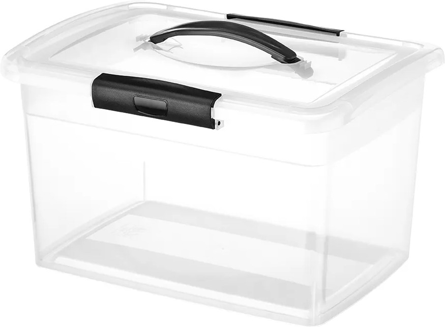 Ящик от El Casa предназначен для организации хранения вещей дома, в офисе и на даче. Размер изделия — 37×27,5×22 см, объём — 14 литров. Размер дна — 32,5×22 см. Органайзер изготовлен из прочного пищевого пластика — полипропилена, который не содержит бисфенол А и другие вредные вещества. Он не впитывает посторонние ароматы и устойчив к влаге, благодаря чему обеспечит сохранность любого содержимого. Благодаря прозрачным стенкам вы всегда сможете легко следить за наполнением, а защёлки чёрного цвета надёжно фиксируют закрытую крышку и не допустят попадания внутрь пыли и мусора. Ручка на крышке обеспечит лёгкость и удобство переноски.