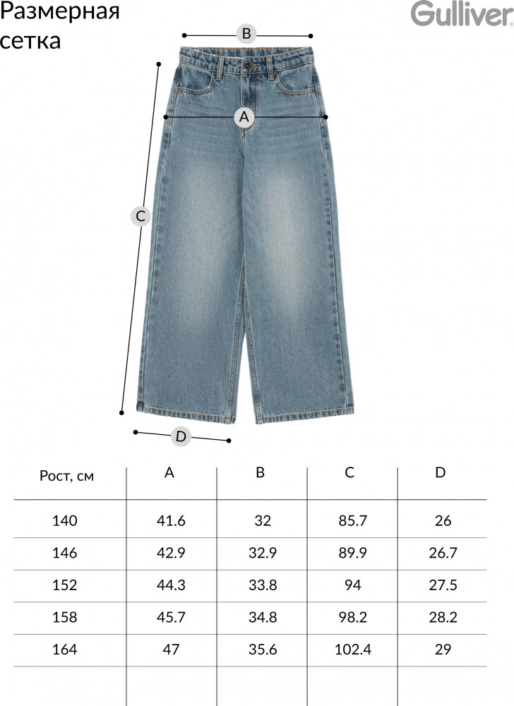 Gulliver Джинсы для девочки силуэта палаццо с высокой посадкой