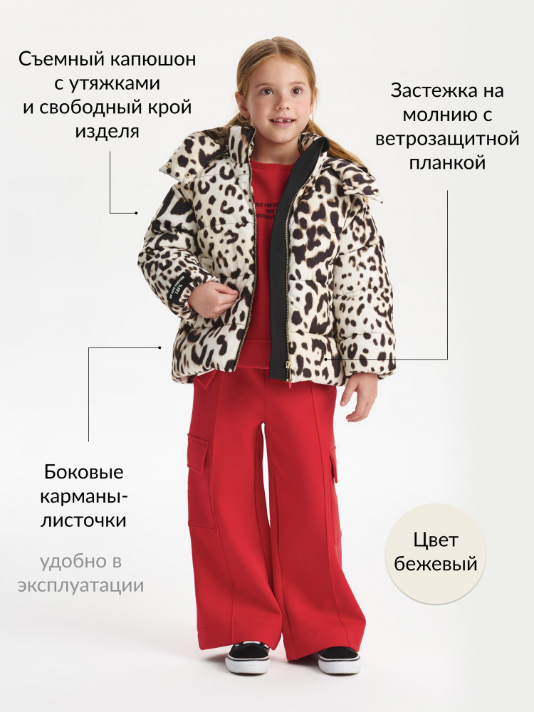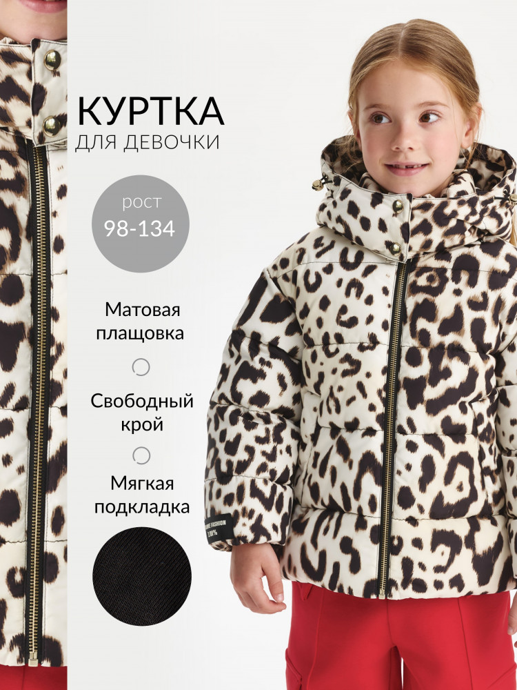 Gulliver Куртка для девочки демисезонная стеганая на искусственном пуху с леопардовым рисунком