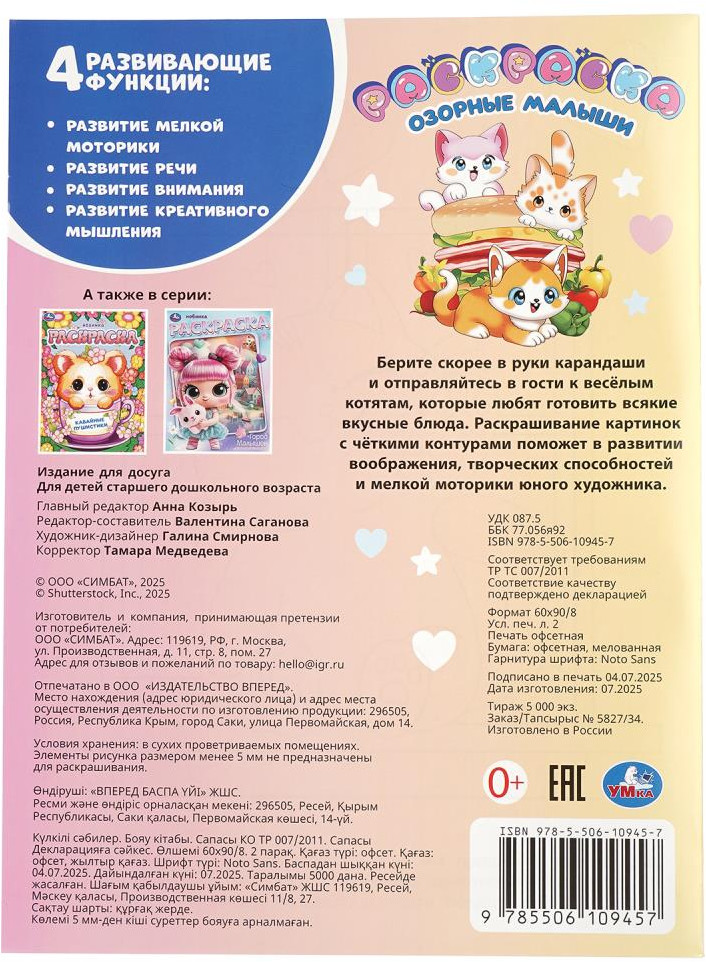 💳 Оплатить за товар можно при получении 🇰🇿 Есть бесплатная доставка по Казахстану от 1 дня 🎁 Копите бонусы с каждой покупки Раскраска «Озорные малыши» ТМ «УМка» — отличный подарок для юных художников. Эта увлекательная раскраска с забавными пушистыми малышами непременно понравится вашему ребёнку. В ней он найдёт интересные картинки с чёткими контурами и сюжетными текстами к ним. Данное издание станет отличным вариантом, чтобы взять его с собой в путешествие и скоротать время в дороге за раскрашиванием. |