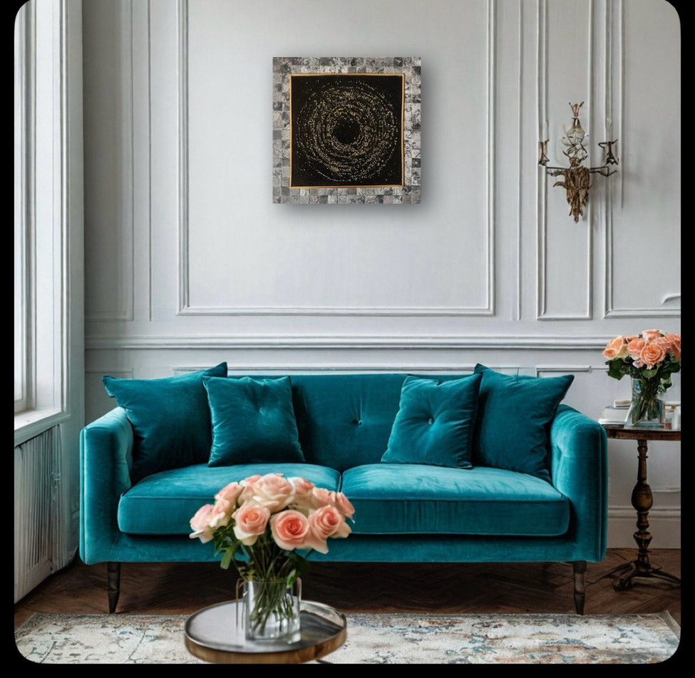 💳 Оплатить за товар можно при получении 🇰🇿 Есть бесплатная доставка по Казахстану от 1 дня 🎁 Копите бонусы с каждой покупки «Звёздная спираль» — декоративное панно 40×40 см. Современное панно в стиле минимализм, созданное в фактурной технике. Глубокий чёрный фон с мерцающими золотыми акцентами образует спираль, напоминающую звёздное небо или далекие галактики. Работа притягивает взгляд мягким сиянием и создаёт атмосферу спокойствия и космической гармонии. |