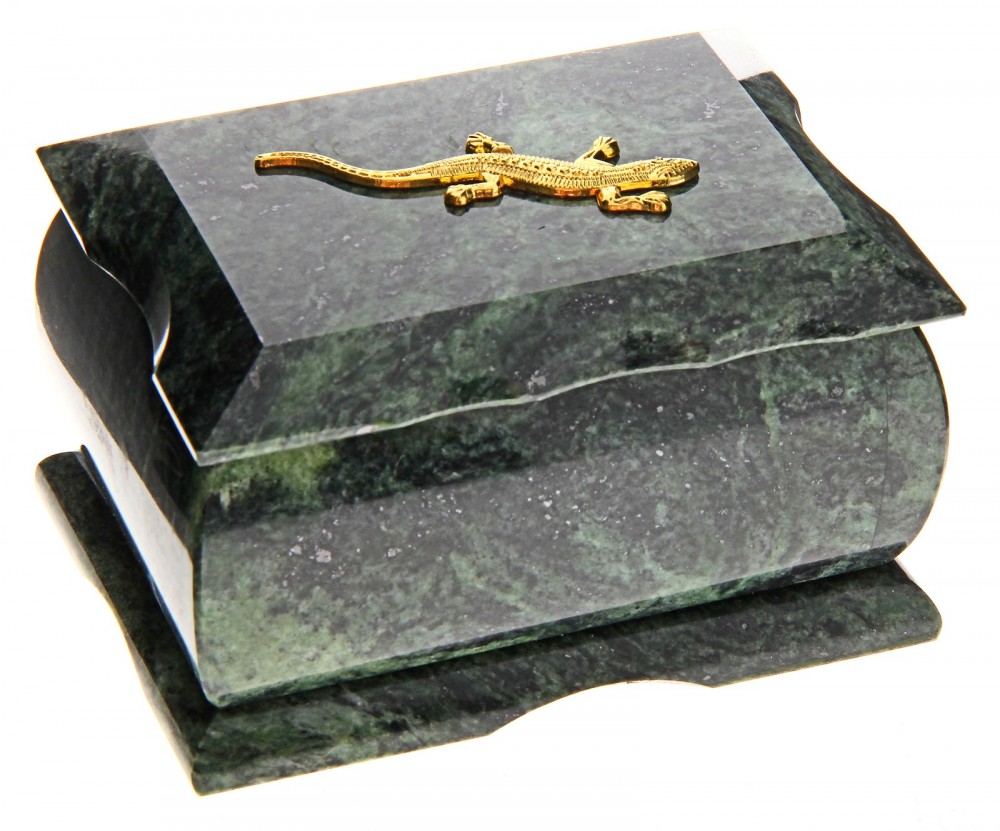 Шкатулка непередаваемой красоты. Камень, ящерица - все безупречно. И размер не маленький - поместилась не маленькая коллекция сережек. Если подобрать подходящую упаковку, можно преподнести как VIP подарок. Очень статусный, дорогой презент. Я оставлю себе любимой :) Благодарю магазин за очередной, качественный товар, который в наших магазинах не встретишь.