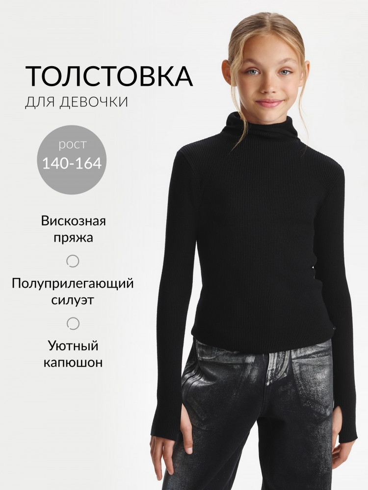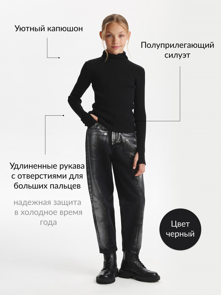 Gulliver Водолазка с капюшоном для девочки вязаная полуприлегающего силуэта