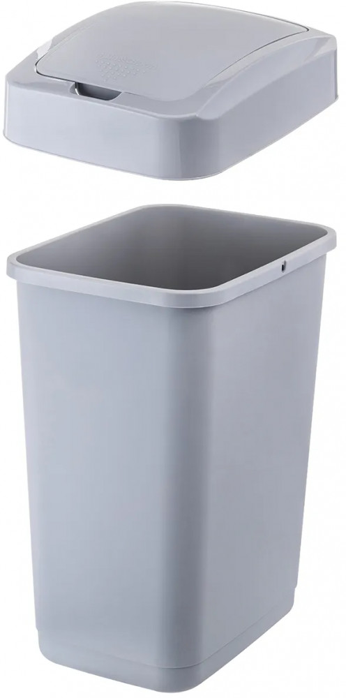Контейнер для мусора с подвижной крышкой от бренда El Casa размером 33х25х47 см и объёмом 25 литров поможет поддерживать чистоту в вашем доме, офисе или на улице. Размер без крышки – 32.5х24х42.5 см, размер дна – 27.5х19 см. Размер крышки – 33.5х25х8.5 см. Ведро серого цвета выполнено из полипропилена. Этот вид пластика считается наиболее безопасным, так как не содержит бисфенол А и не выделяет вредных веществ.