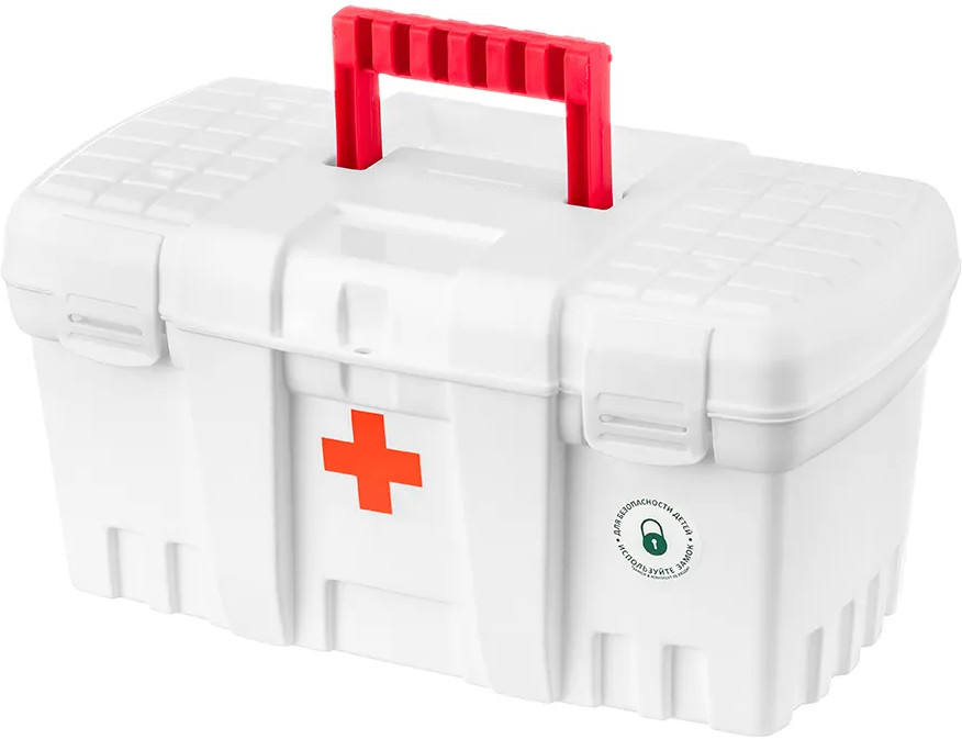 💳 Оплатить за товар можно при получении 🇰🇿 Есть бесплатная доставка по Казахстану от 1 дня 🎁 Копите бонусы с каждой покупки Контейнер-аптечка El Casa предназначен для эстетичного хранения лекарств и средств оказания первой медицинской помощи. Размер 38х21х19.5 см, объём 6 литров. Размер дна 32.5х15 см. Выполнен из полипропилена – экологичного и прочного пластика. Пластиковая коробка имеет ручку для перевозки и 2 защёлкивающихся клапана на крышке. Крепкие защёлки обеспечивают защиту аптечного чемодана при переносе, а также усложняют доступ к содержимому для маленьких детей. В целях дополнительных мер безопасности рекомендуем хранить кейс в закрытом шкафу или на высокой полке. На крышке есть отверстие диаметром 7 мм, при необходимости можно подобрать к нему отдельный замок (в комплект не входит). |