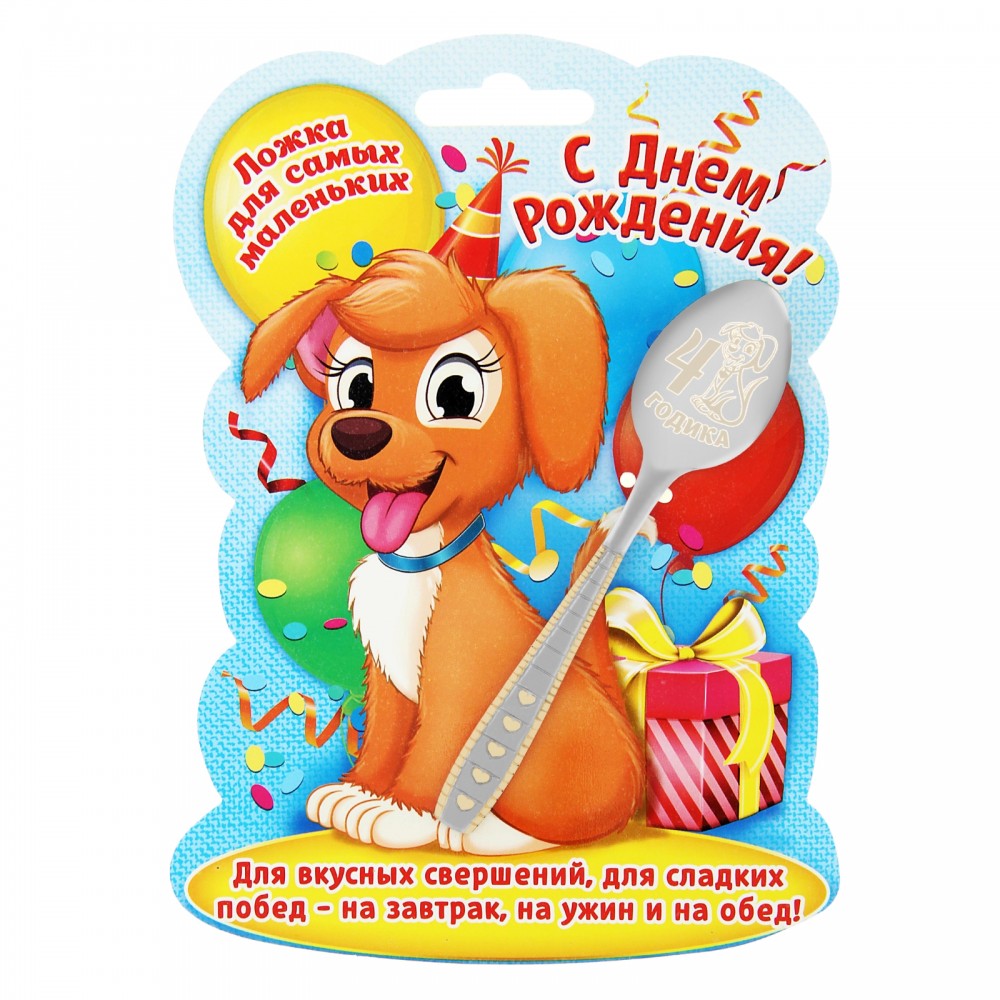 | Ложка детская на открытке «4 годика»