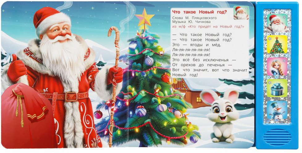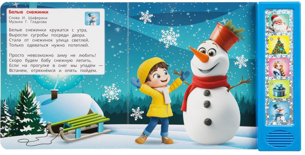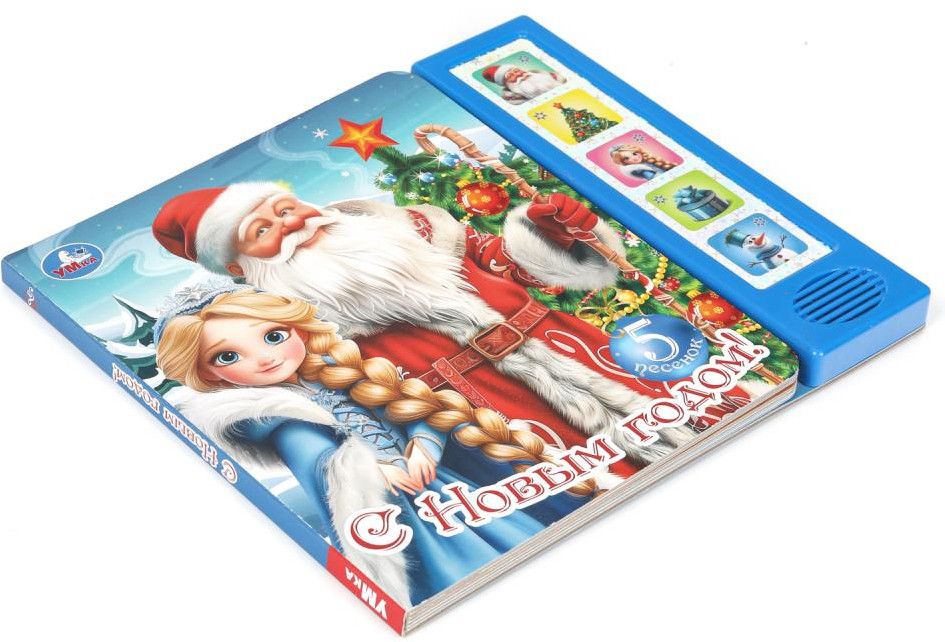 Музыкальная книга «С Новым годом!» ТМ «УМка» станет отличным подарком для вашего малыша. Ребёнок с удовольствием будет листать плотные страницы, рассматривать яркие картинки и, конечно, нажимать на кнопки и слушать известные новогодние песенки. Малыш легко освоит включение звука: по нажатию на кнопку песенка включится, при втором нажатии выключится. Благодаря компактному размеру книгу удобно взять с собой в дорогу.