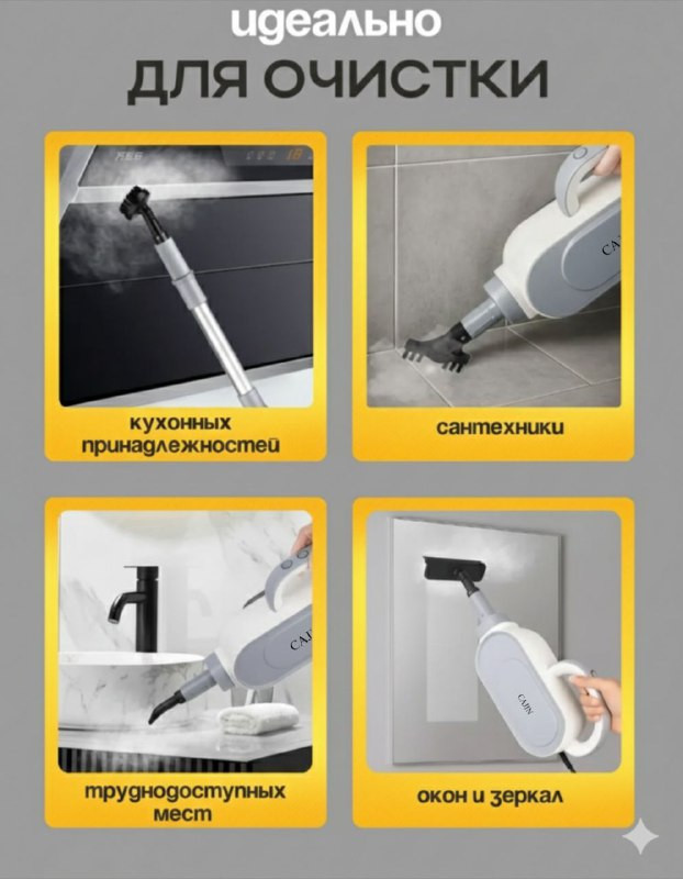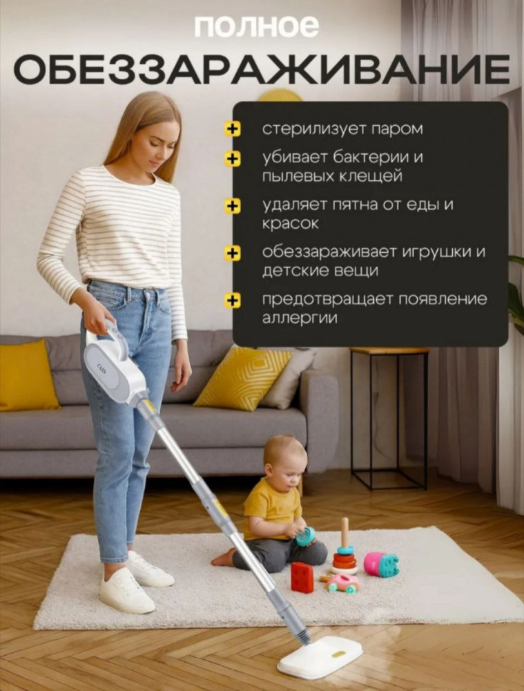 Электрошвабра с парочистителем справляется с загрязнениями на различных поверхностях, включая плитку, ламинат, ковры и даже мягкую мебель. Насадки, входящие в комплект, обеспечивают универсальность применения, позволяя вам заботиться о чистоте везде: от пола до окон.