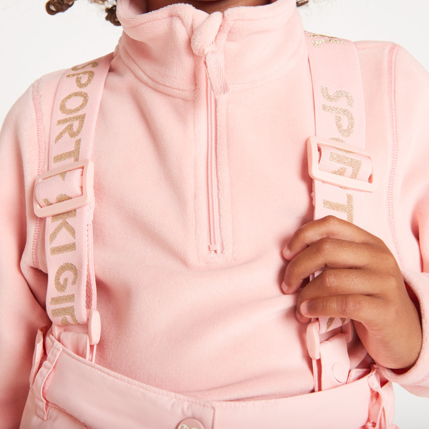 Полукомбинезон для девочки — практичная и тёплая модель для зимних прогулок и активного отдыха. Выполнен из прочного водоотталкивающего материала, сохраняющего тепло и защищающего от влаги. Регулируемый пояс с липучками внутри и шлёвками для ремня обеспечивает удобную посадку. Эластичная нескользящая ластовица с липучками и кнопками на лодыжках предотвращает попадание снега внутрь обуви. Внутренняя подкладка из вуали и микрофлиса делает изделие особенно мягким и комфортным, а утеплитель из переработанного полиэстера сохраняет тепло даже в мороз.