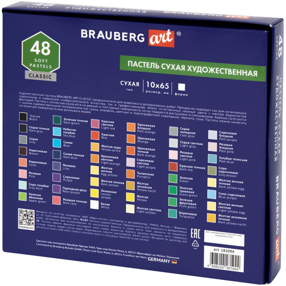 💳 Оплатить за товар можно при получении 🇰🇿 Есть бесплатная доставка по Казахстану от 1 дня 🎁 Копите бонусы с каждой покупки Сухая художественная пастель Brauberg предназначена для графики и живописи. Она отличается насыщенностью цвета, мягким письмом и не крошится при использовании. Пастель подходит как для начинающих художников и любителей, так и профессионалов. |