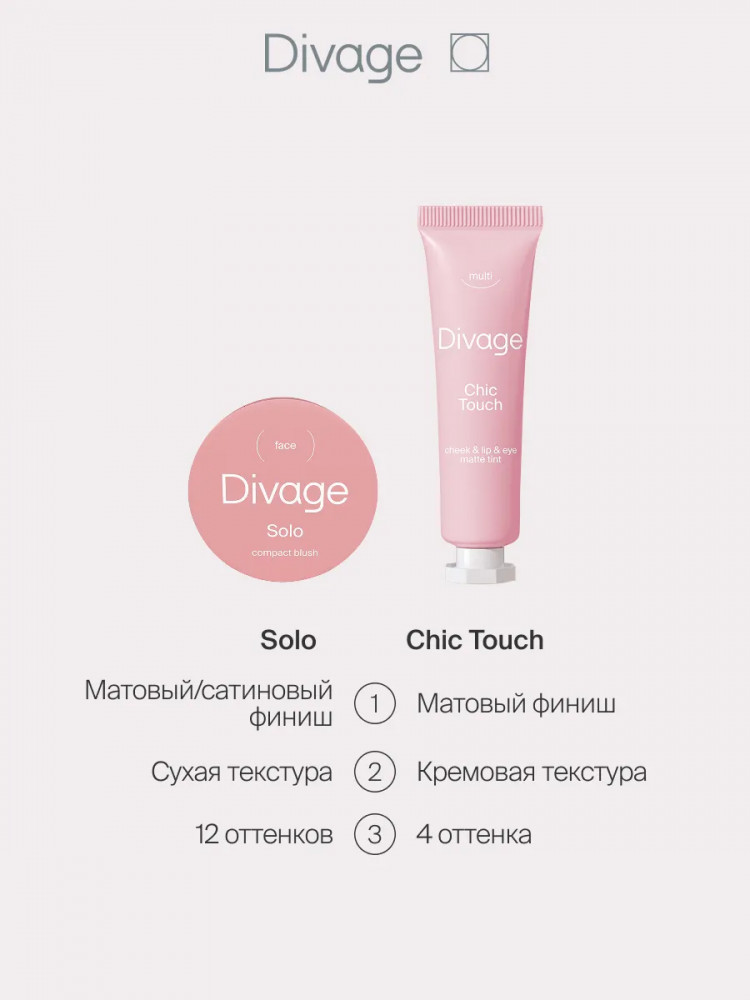 Divage Румяна для лица «Solo Compact Blush», оттенок 07 Orchid натуральный розовый