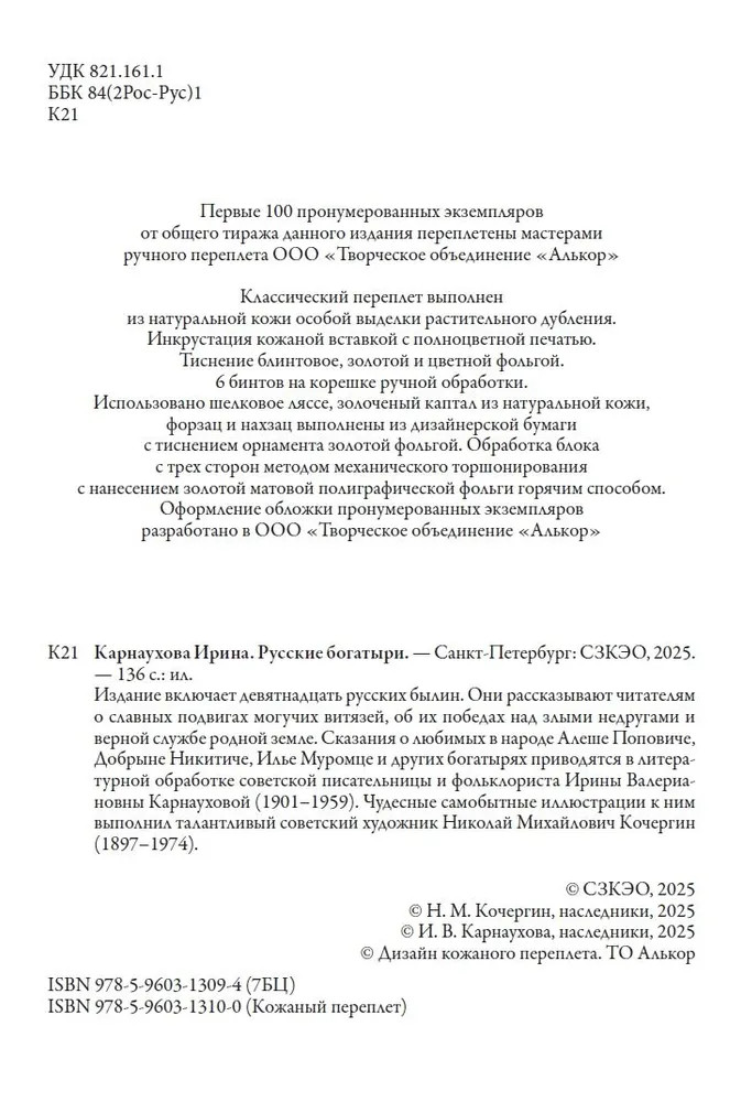 💳 Оплатить за товар можно при получении 🇰🇿 Есть бесплатная доставка по Казахстану от 1 дня 🎁 Копите бонусы с каждой покупки Серия: Библиотека мировой литературы Издание включает девятнадцать русских былин. Они рассказывают читателям о славных подвигах могучих витязей, об их победах над злыми недругами и верной службе родной земле. Сказания о любимых в народе Алёше Поповиче, Добрыне Никитиче, Илье Муромце и других богатырях приводятся в литературной обработке советской писательницы и фольклориста Ирины Валериановны Карнауховой (1901-1959). Чудесные самобытные иллюстрации к ним выполнил талантливый советский художник Николай Михайлович Кочергин (1897-1974). |