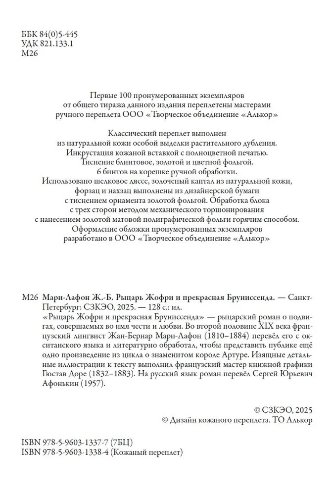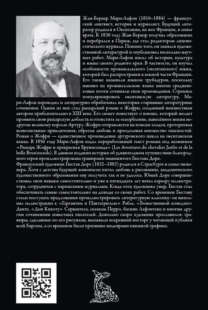 💳 Оплатить за товар можно при получении 🇰🇿 Есть бесплатная доставка по Казахстану от 1 дня 🎁 Копите бонусы с каждой покупки Серия: Библиотека мировой литературы «Рыцарь Жофри и прекрасная Бруниссенда» — рыцарский роман о подвигах, совершаемых во имя чести и любви. Во второй половине XIX века французский лингвист Жан-Бернар Мари-Лафон (1810-1884) перевёл его с окситанского языка и литературно обработал, чтобы представить публике ещё одно произведение из цикла о знаменитом короле Артуре. Изящные детальные иллюстрации к тексту выполнил французский мастер книжной графики Гюстав Доре (1832-1883). На русский язык роман перевёл Сергей Юрьевич Афонькин (1957). |