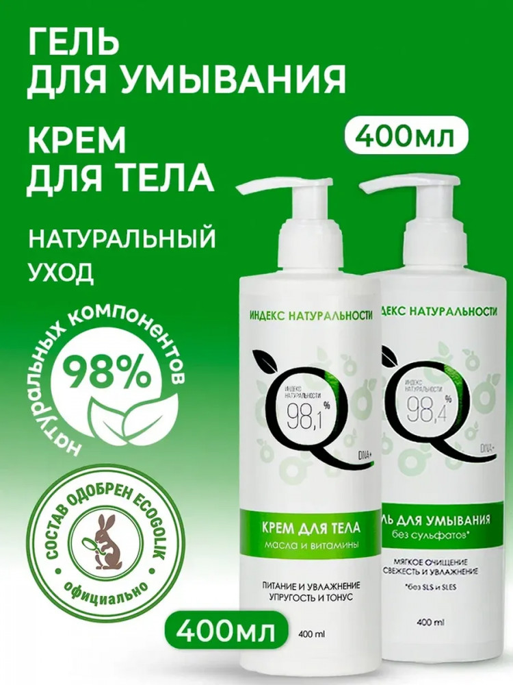 Крем для тела: Aqua (вода), Isopropyl Palmitate (изопропилпальмитат/смягчающий эмолент), Glycerin (глицерин), Cetearyl Alcohol (цетеариловый спирт/эмульгатор), Polyglyceryl-3 Methylglucose Distearate (глюкоза), Butyrospermum Parkii Oil (масло ши), Caprylic/Capric Triglyceride (каприлик/каприк триглицериды/смягчающий эмолент), Coco-caprylate (коко-каприлат/смягчающий эмолент), Potassium C16-18 Alkyl Phosphate (калия алкилфосфат/фосфолипидный эмульгатор, схожий с кожей человека), Sorbitol (сорбитол/увлажнитель), Prunus Persica Kernel Oil (персиковое масло), Glycine Soja Oil (соевое масло), Niacinamide (витамин В3), Tocopheryl Acetate (витамин Е), Retinol (витамин А), Tocopherol (mixed), Beta Sitosterol, Squalene (природный антиоксидант), Rosa Damascena Flower Water (гидролат розы дамасской), Calendula Officinalis Flower Water (гидролат календулы), Pelargonium Graveolens Flower Water (гидролат герани), Parfum (отдушка), Xanthan Gum (ксантановая камедь/структурообразователь), Sodium Hydroxide (натрия гидроксид/регулятор pH крема), Sorbitan Caprylate (сорбитан каприлат), Propanediol (пропандиол), Benzoic Acid (бензойная кислота) — консерванты, разрешенные по стандартам COSMOS для производства органической косметики.