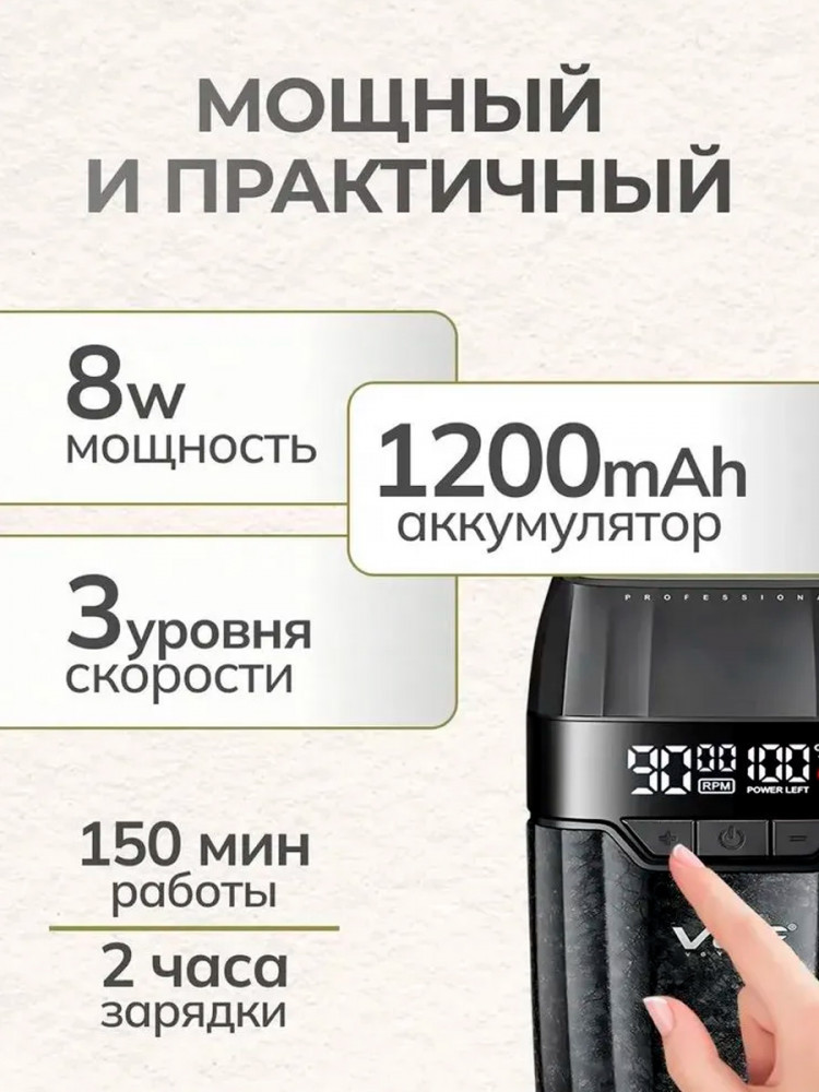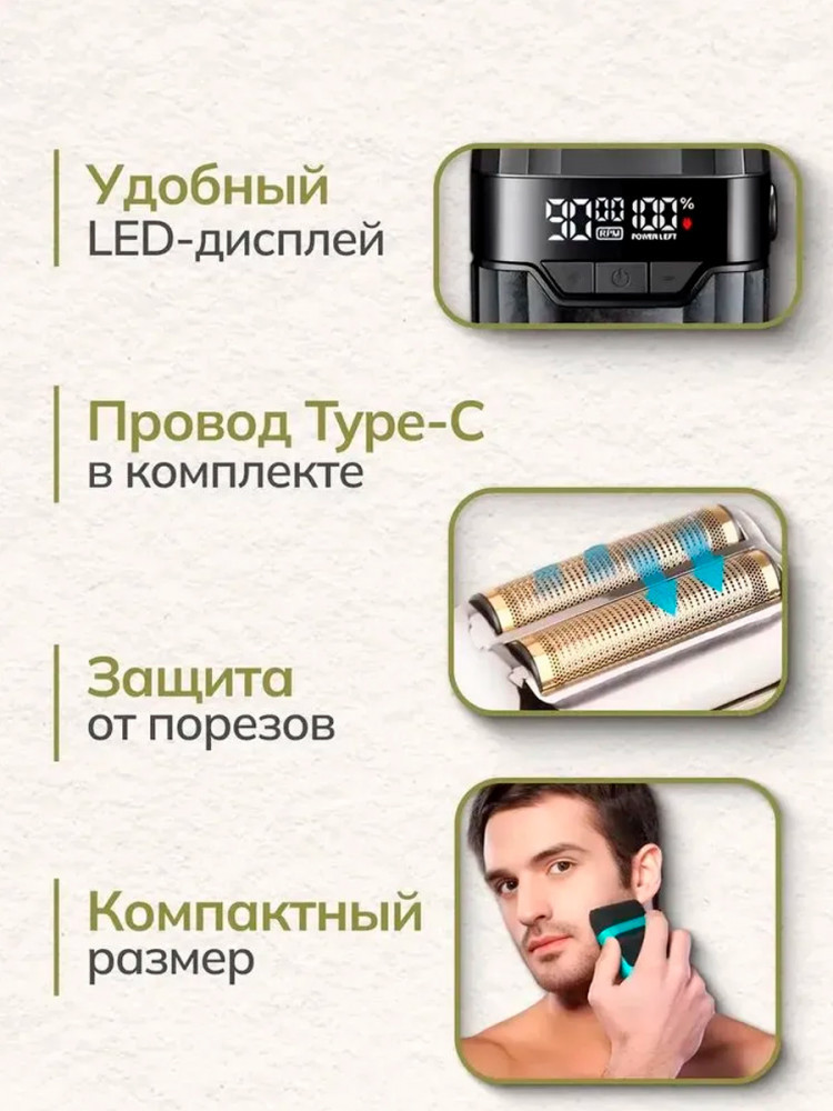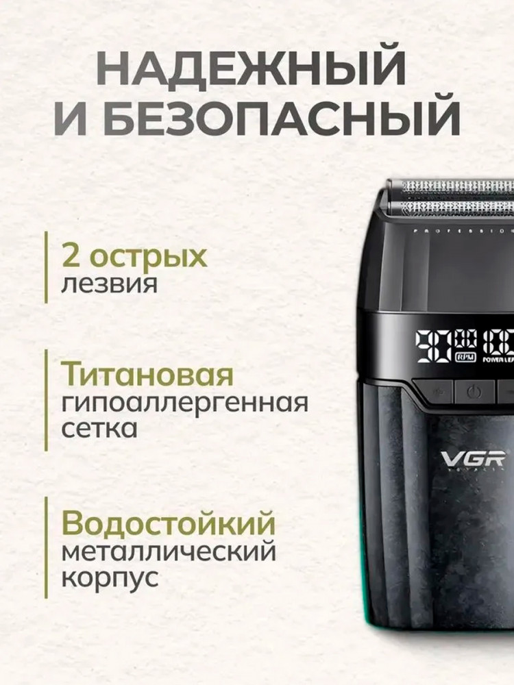 💳 Оплатить за товар можно при получении 🇰🇿 Есть бесплатная доставка по Казахстану 🎁 Копите бонусы с каждой покупки Электробритва VGR V-640S — это современный шейвер с двойной системой лезвий, предназначенный для чистого и аккуратного бритья. Модель оснащена высокоскоростным мотором с частотой работы 7000–9000 об/мин, что обеспечивает эффективное и комфортное удаление щетины без раздражения кожи. Эргономичный корпус удобно лежит в руке, а встроенный LED-дисплей отображает уровень заряда и состояние работы устройства. Бритва работает от аккумулятора ёмкостью 1200 мА·ч, поддерживает зарядку через USB, что делает её удобной для использования дома и в поездках. |