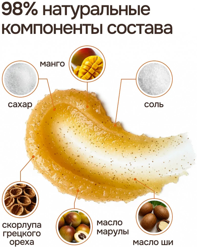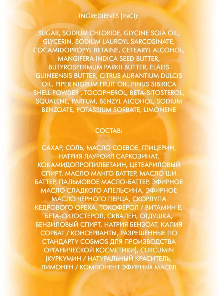 Индекс натуральности Набор скрабов для тела отшелушивающих антицеллюлитных «Манго и цитрус»